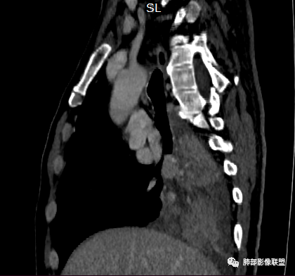 1.肺腺样囊性癌:是下呼吸道最常见涎腺肿瘤,占气管肿瘤的30-40%起源,相对局限于气管侧壁及后壁腺体丰富区域。临床分期高,容易复发和转移,多预后不良。好发部位以气管、主支气管为主,沿管壁浸润性生长引起长段管腔狭窄较MEC常见。在CT上多呈均匀低密度,瘤内钙化少见,增强后强化不明显。