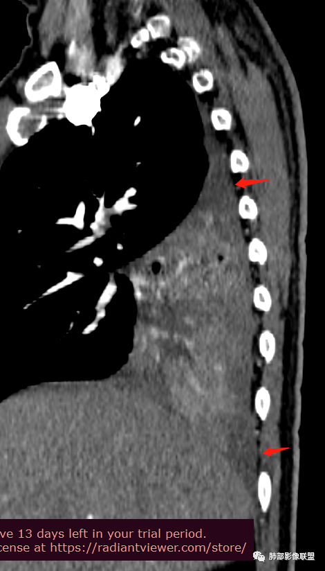 而且我认为近端实变区强化与附近高密度影是否与感染有关