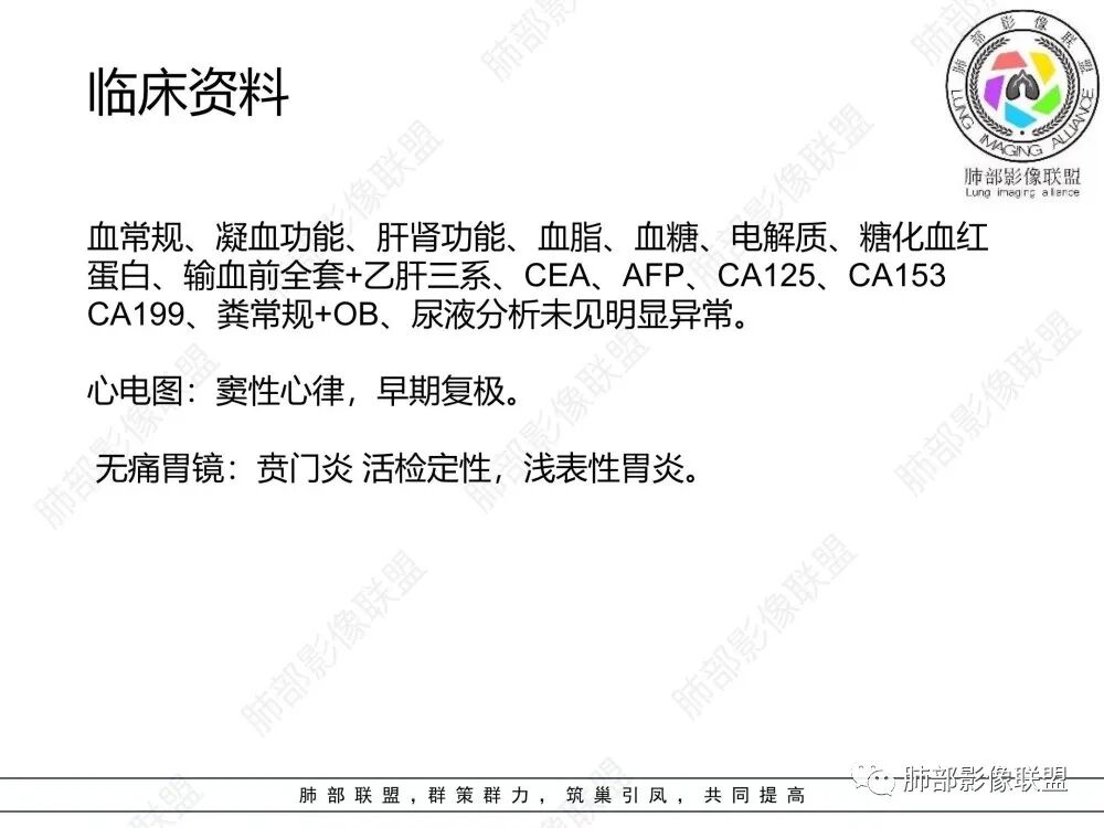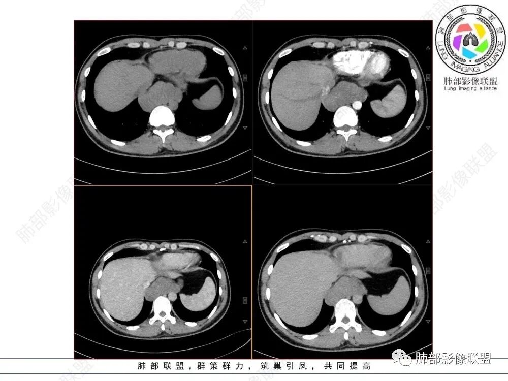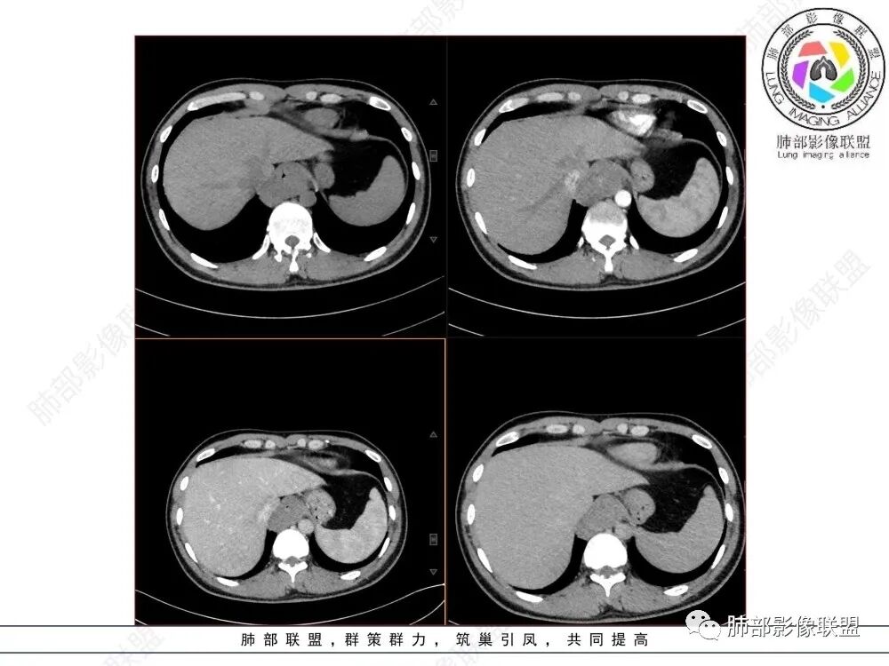 影像诊断思路:起源食管肿瘤(非黏膜起源,肌层起源),良性或低度恶性肿瘤可能性大,一般以神经鞘瘤、胃肠间质瘤及平滑肌瘤为主。食管神经鞘瘤强化明显均匀、以食管上段多见,周围常见炎性增大淋巴结,不太符合;胃肠间质瘤小的比较均匀,大的不均匀,但强化程度较高;影像上看这例病例比较符合平滑肌瘤。