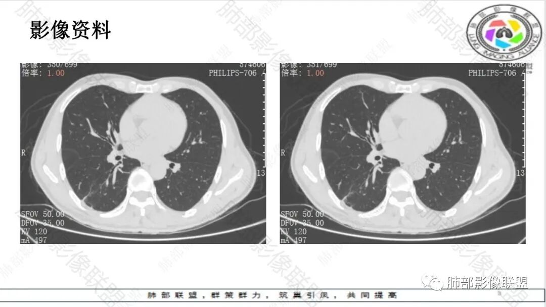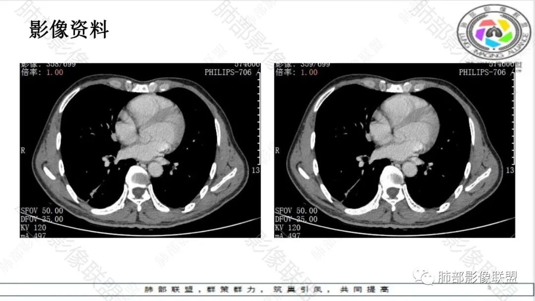 2.综合分析:条片状病灶,边缘平直,尖角,未见典型的分叶毛刺,少张力,也未见边界清楚的磨玻璃晕,同侧肺门及纵隔未见增大淋巴结等等,总之,如多数老师分析,缺乏典型恶性肿瘤影像学特征。