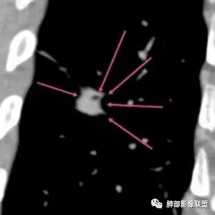 未见卫星病灶,未见“树芽征”或拐枣样改变“拐枣征”。未显示新旧不等改变。