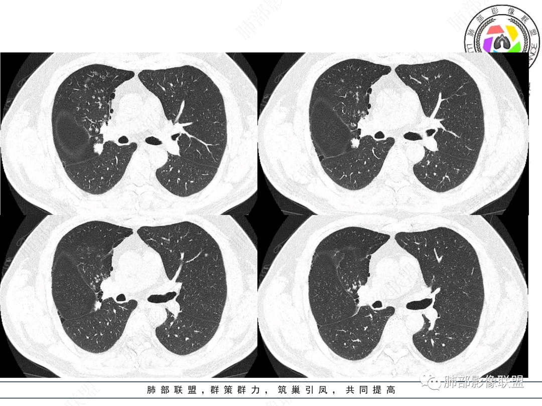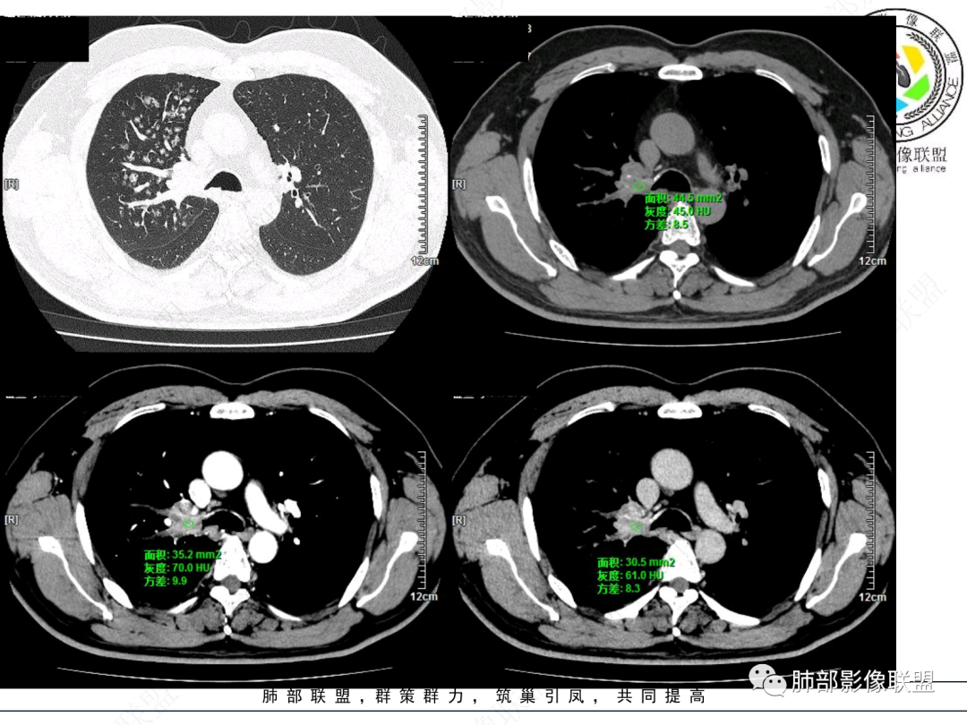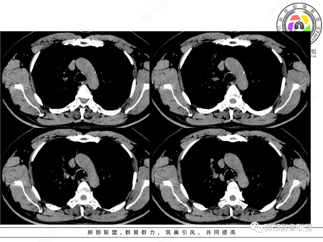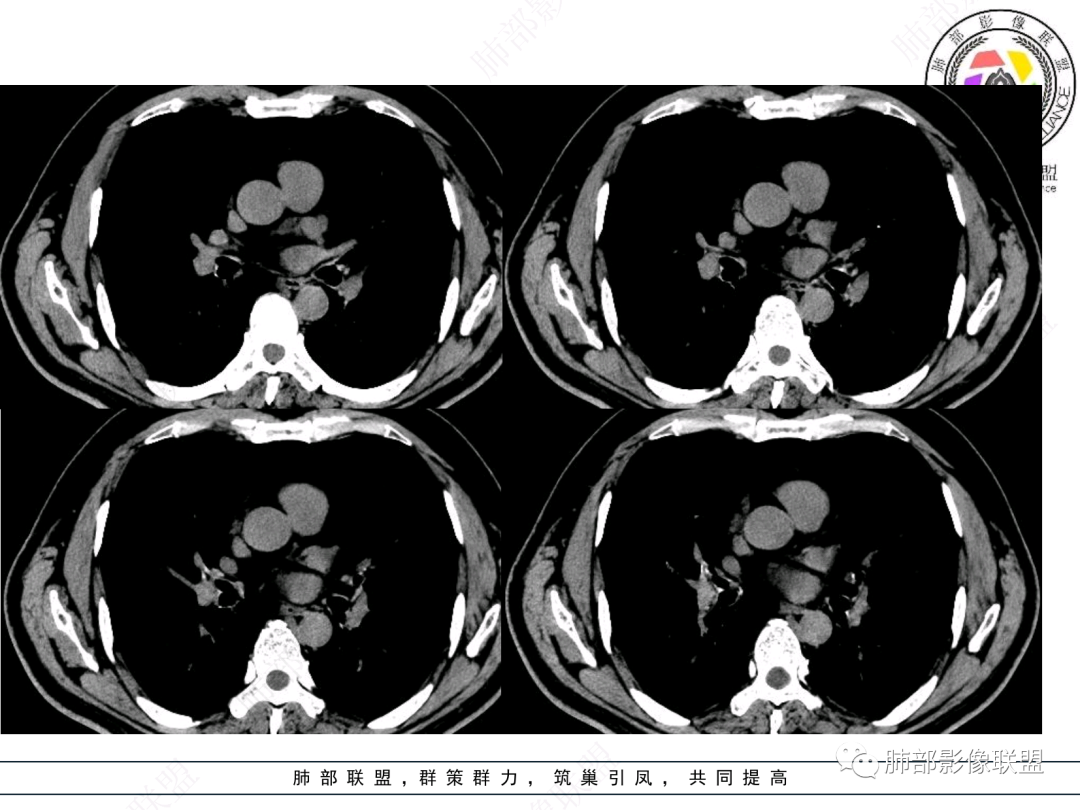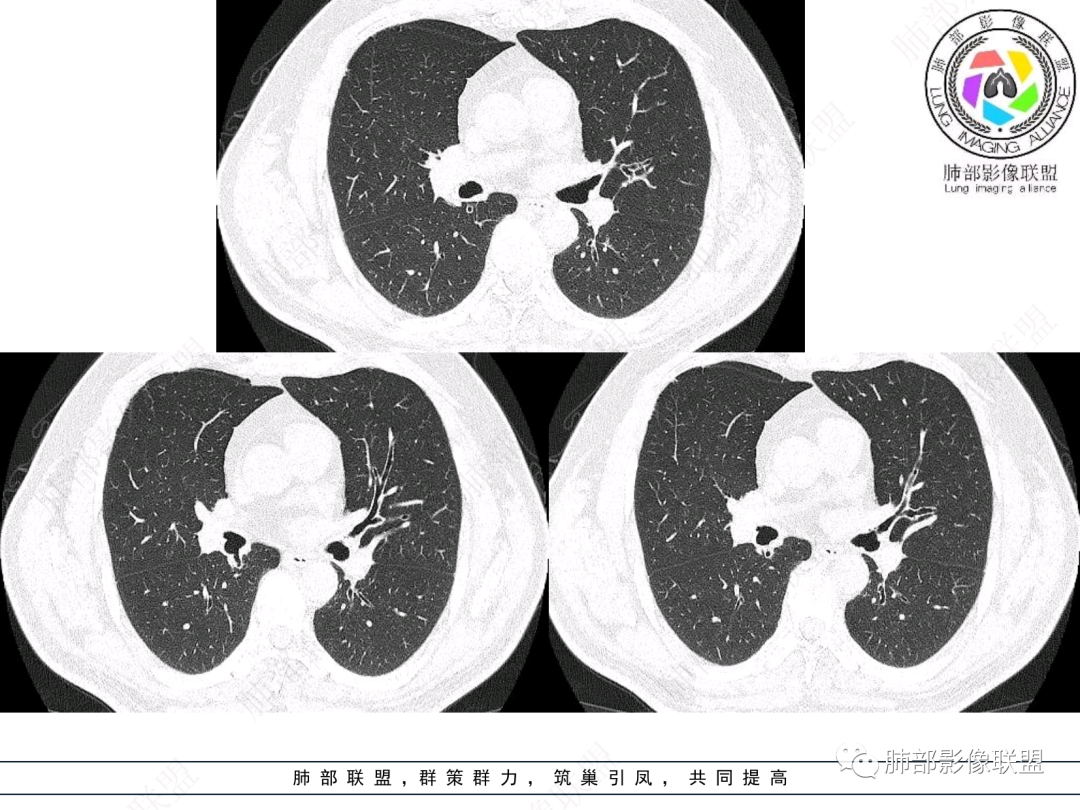 影像上分析的观察点:腔内、壁、腔外、远端,然后就是远端肺组织、淋巴结、肺血管、胸膜、其他肺部,这个人就是阻塞性炎症为主。