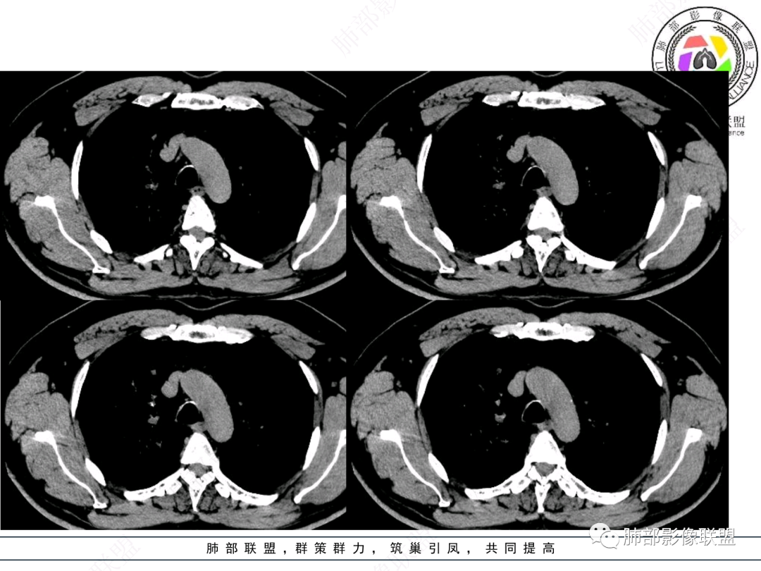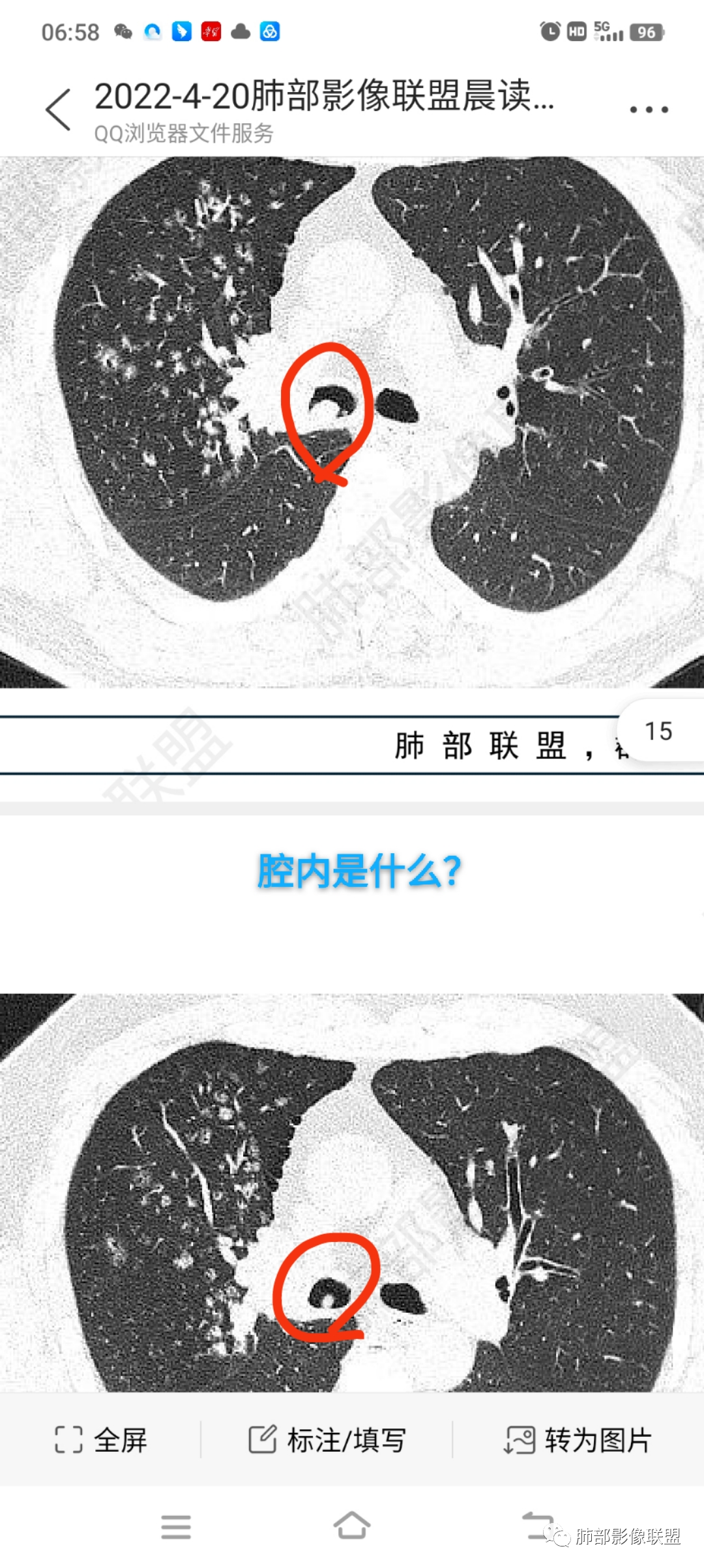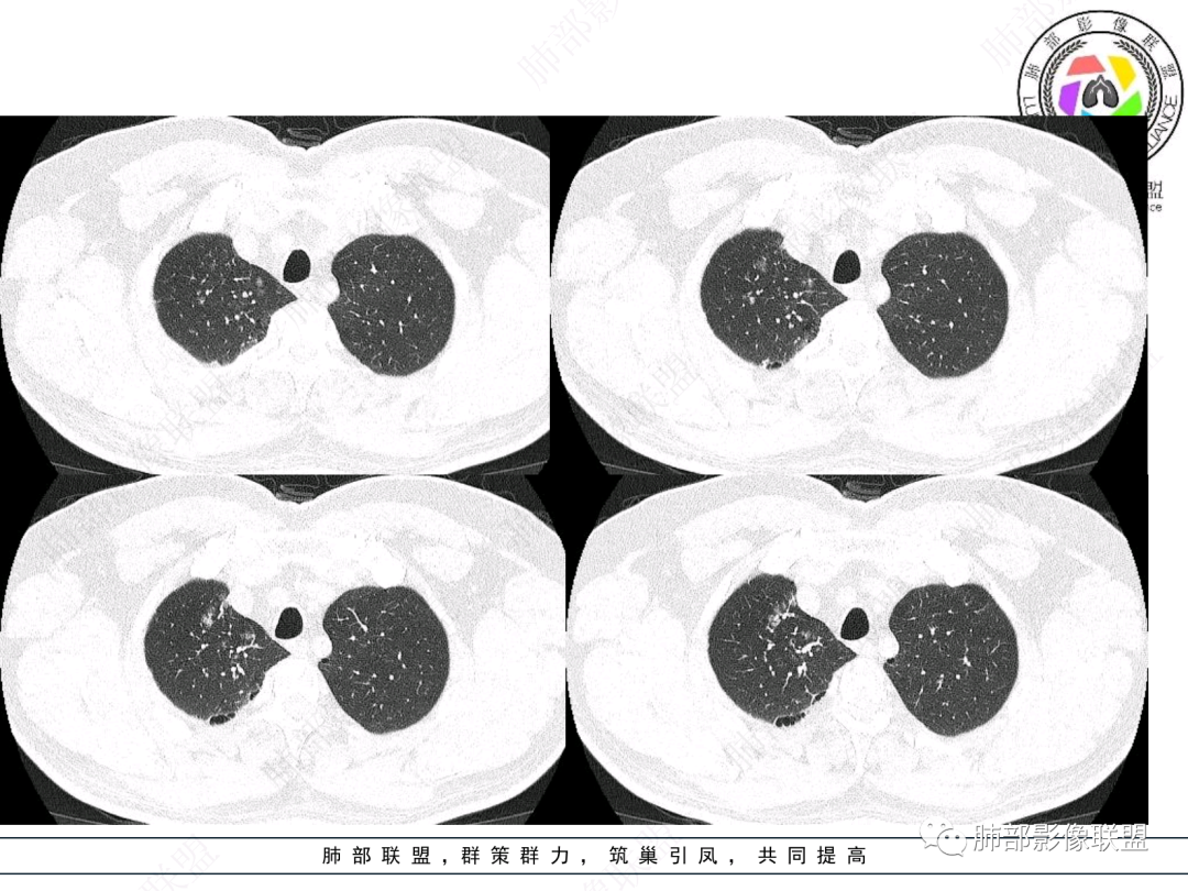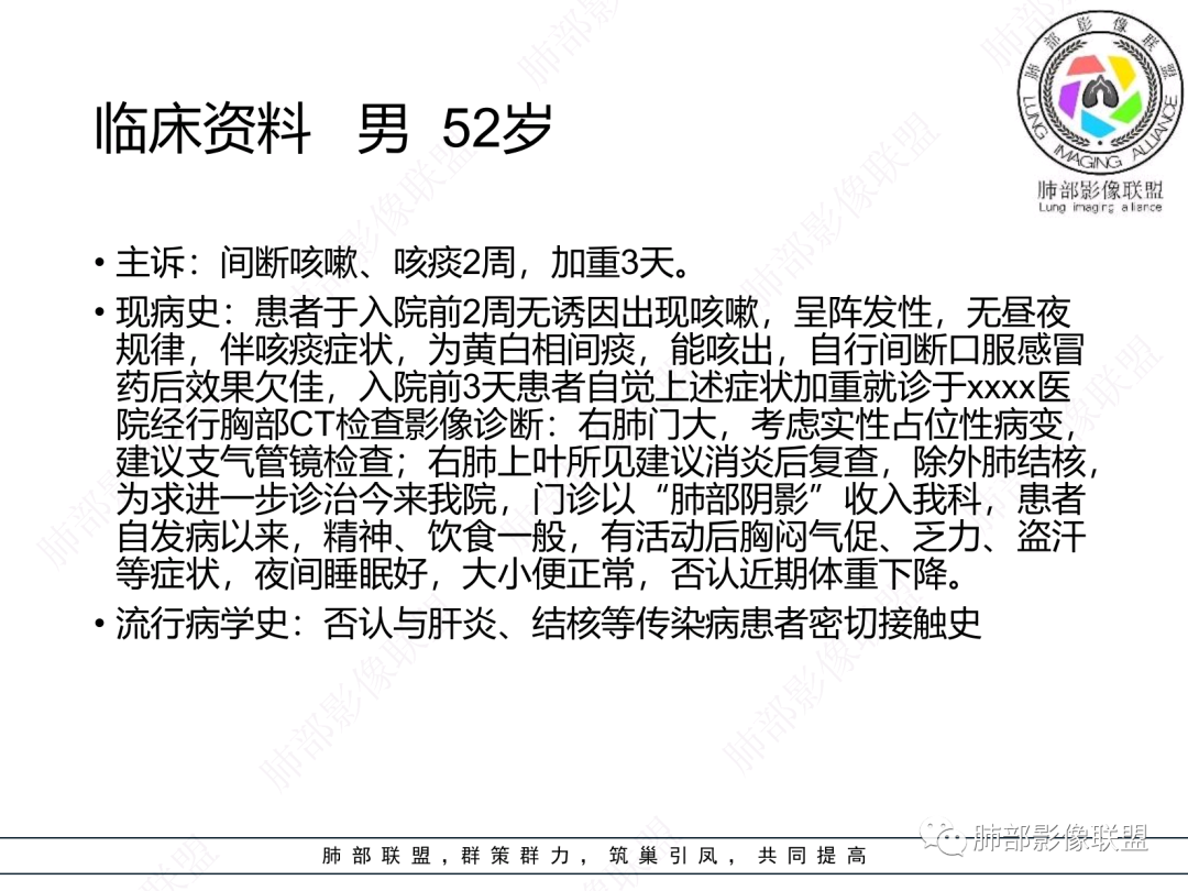 影像上分析的观察点:腔内、壁、腔外、远端,然后就是远端肺组织、淋巴结、肺血管、胸膜、其他肺部,这个人就是阻塞性炎症为主。