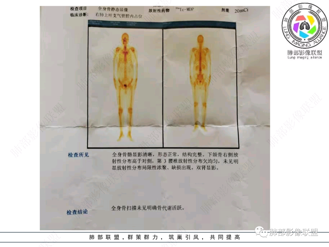 肺门肿块,支气管铸型,远侧小花小草,考虑鳞癌,右主支气管结节,鳞癌?二元论:腺样囊性癌?