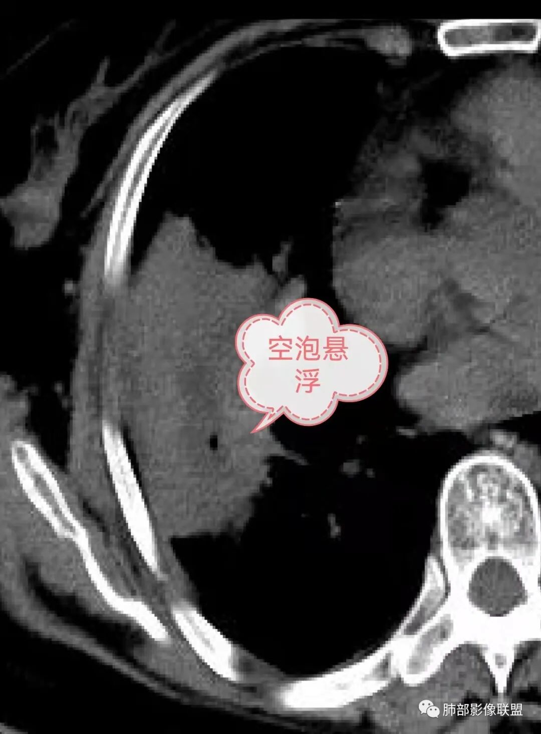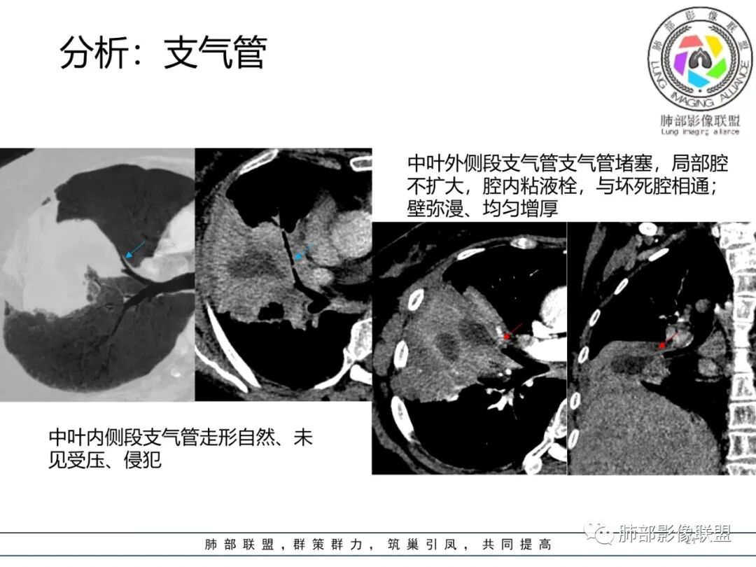 看中叶外侧段的病变,我观察到支气管与坏死腔相通的,支气管这种堵塞就不踏实了,假如是腔内的病变,就不太支持。