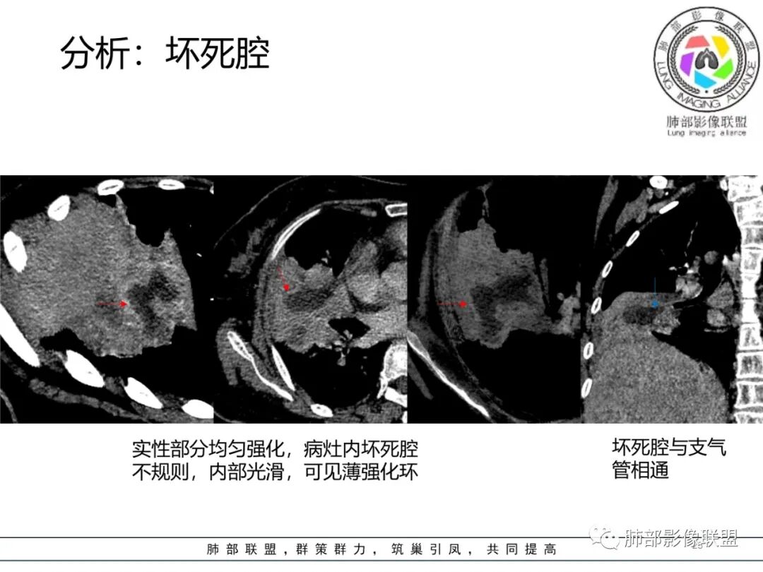 现有的CT,里面存在坏死腔。炎症肯定有,是否同时合并肿瘤的问题?我需要详细的图将内部结构逐步剖析出来,看看能否有新的依据