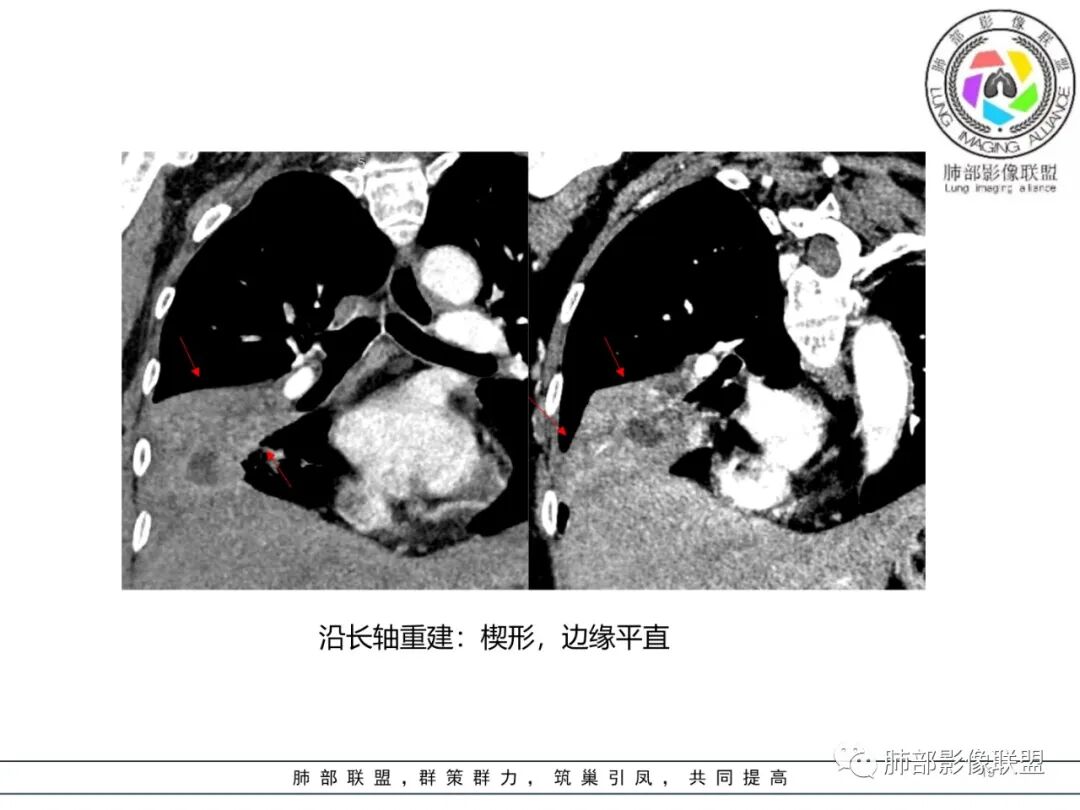 这个病例,看长轴、形态,首先跨叶,里面的坏死腔,它是相通的,就是跨中叶及前基底段。