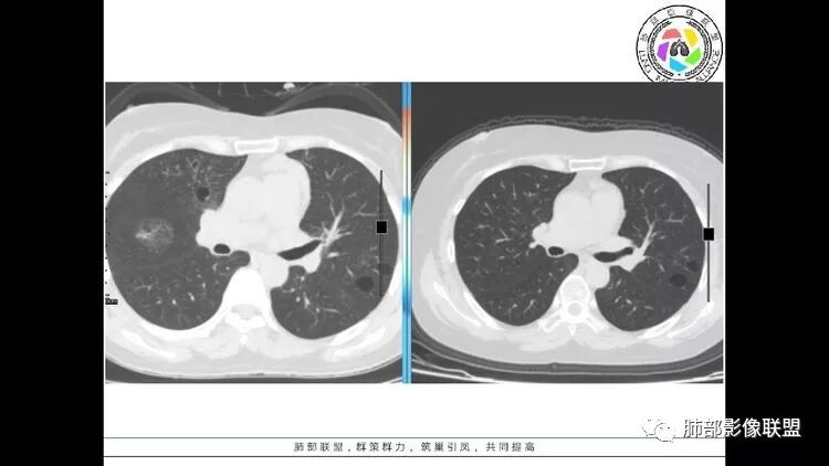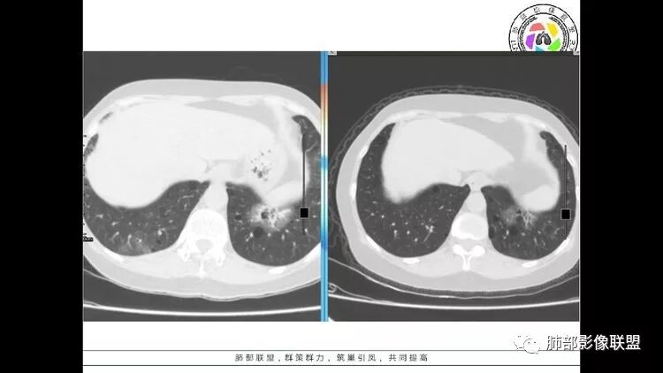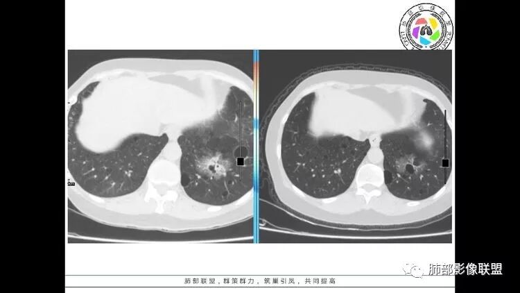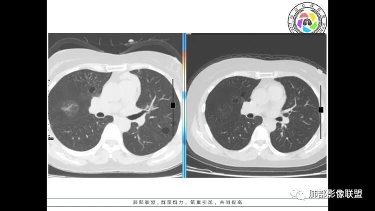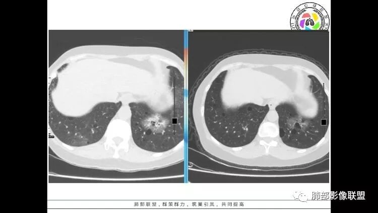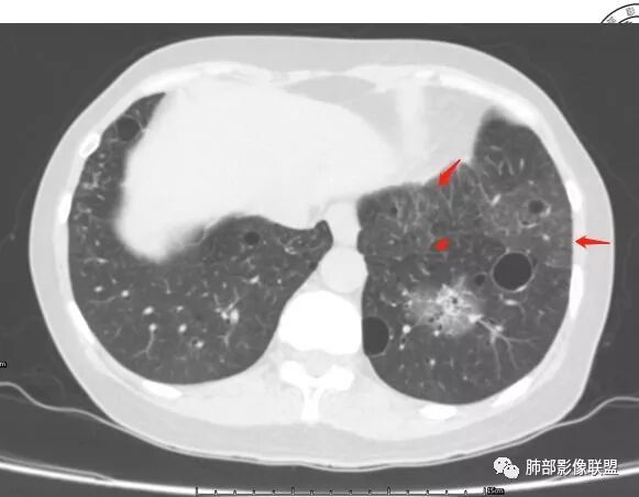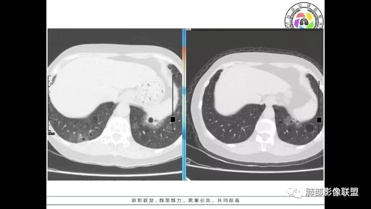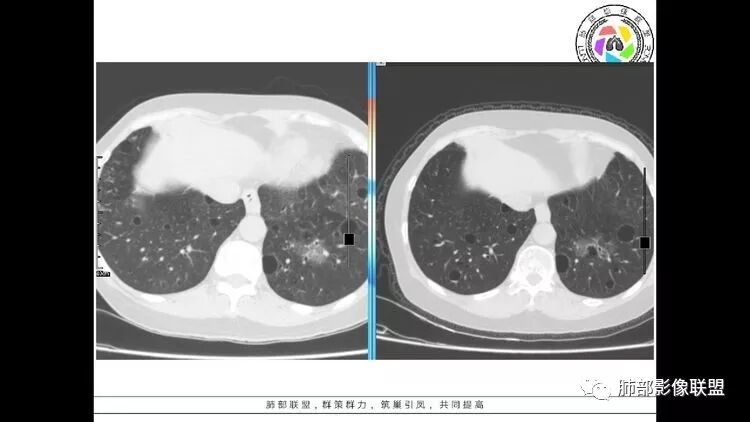 双肺多发囊性病变,右下肺结节伴树芽,左上肺结节影,边缘清晰,毛刺。有类风湿,及眼干病史。考虑lip,腺癌。鉴别血管炎。