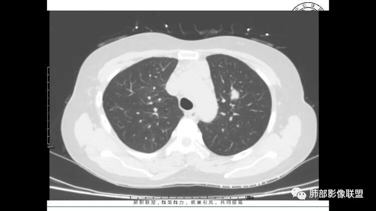 2 左肺上叶尖后段 右肺上叶前段 右肺下叶外基底段 结节影,边界清楚,可见柔软毛刺,左肺下叶后基底段混合密度影。