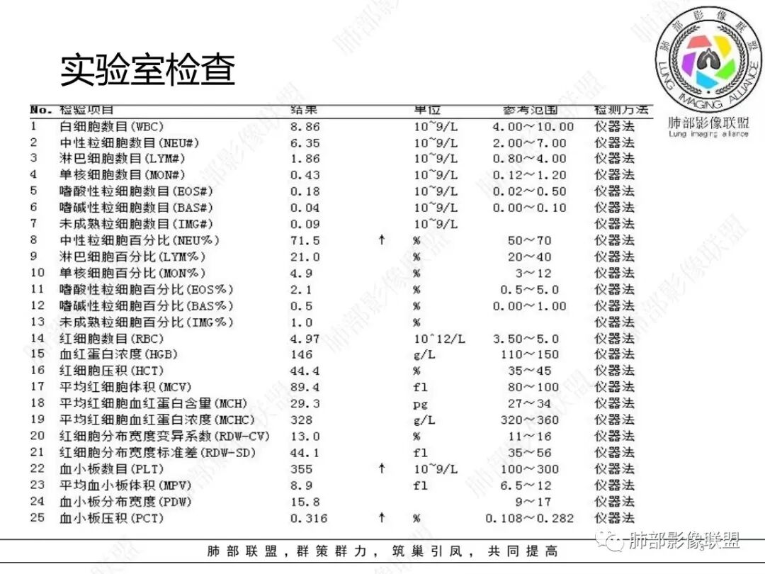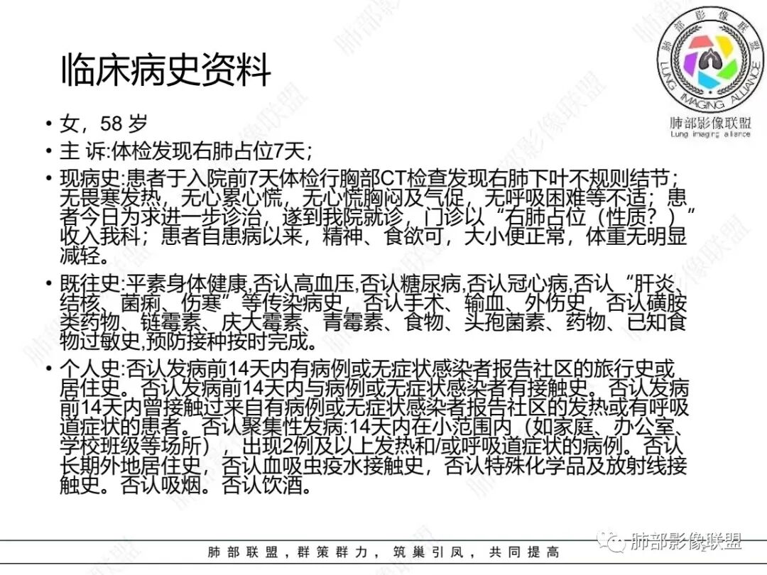 1、临床特点:58岁女性,体检发现右肺结节7天,无基础病,中性粒细胞百分比略高,无实验室检查无特殊。