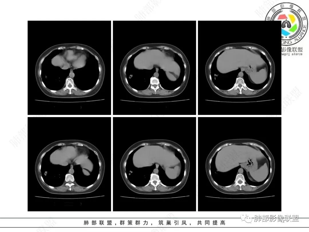 3、综合分析:中老年女性胸膜下不规则结节,无特殊临床表现,实验室检查亦无特殊,病灶在部分断面呈斑片状,边缘多平直甚至凹陷,缺乏分叶及膨隆感,未见粗短毛刺及胸膜凹陷,部分层面似见”月牙铲“样外形,但缺乏张力的“月牙铲”不太可靠。灶周磨玻璃晕也会让人警惕肺腺癌可能,磨玻璃影边界是否清晰常须薄层仔细分辨。