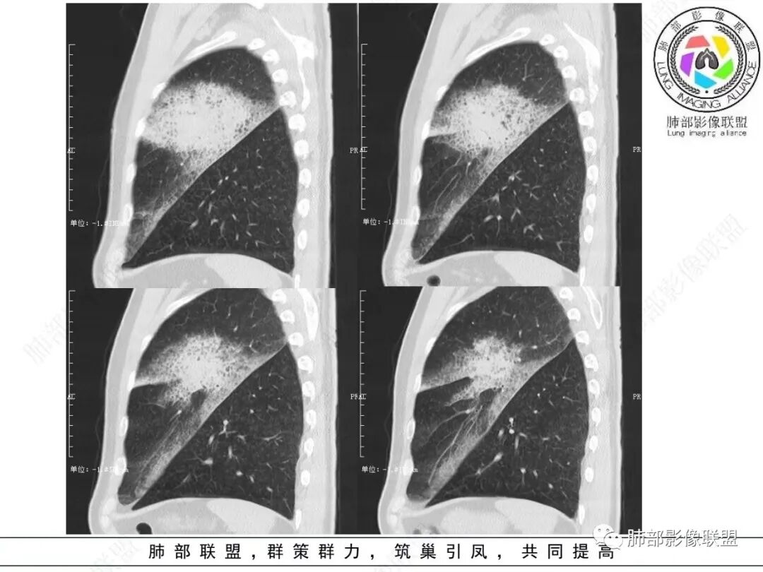 大片实变灶累及多个段