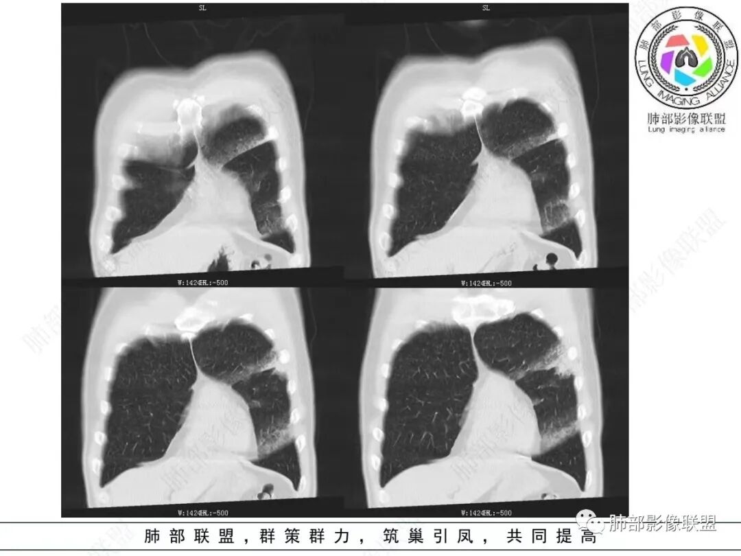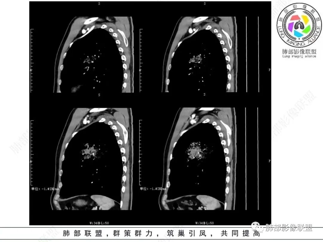 • 后期随着粘液在气腔及气道漂散,肿瘤容易种植播散于肺泡腔,但不容易种植于支气管黏膜面