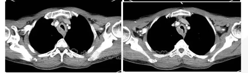 CT表现最常累及声门下气管,呈环形增厚,后壁可受累,累及范围较长2-4cm,肺内常多发结节、肿块、实变,易形成空洞