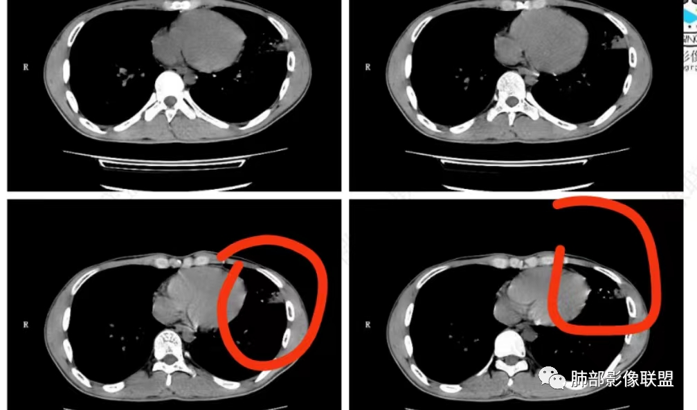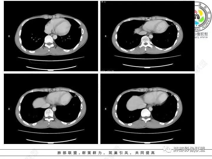 青年男性,咳嗽,无痰,胸痛为主要表现,白细胞总数不高,crp升高。胸部CT双肺多发实变影及磨玻璃影,可见支气管扩张,部分实变与胸膜粘连,整体纵隔向左偏移,左肺容积缩小,右侧肺静脉增粗,右心室明显扩大,左心室内膜增厚,还有椎体右前方类圆形阴性,均匀强化,看到这些,没有头绪,向各位老师学习。