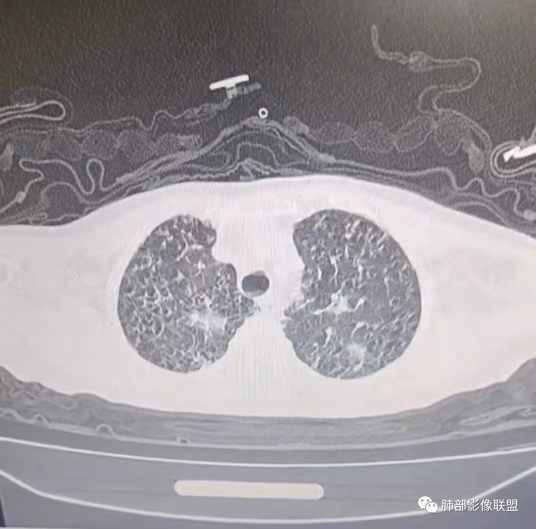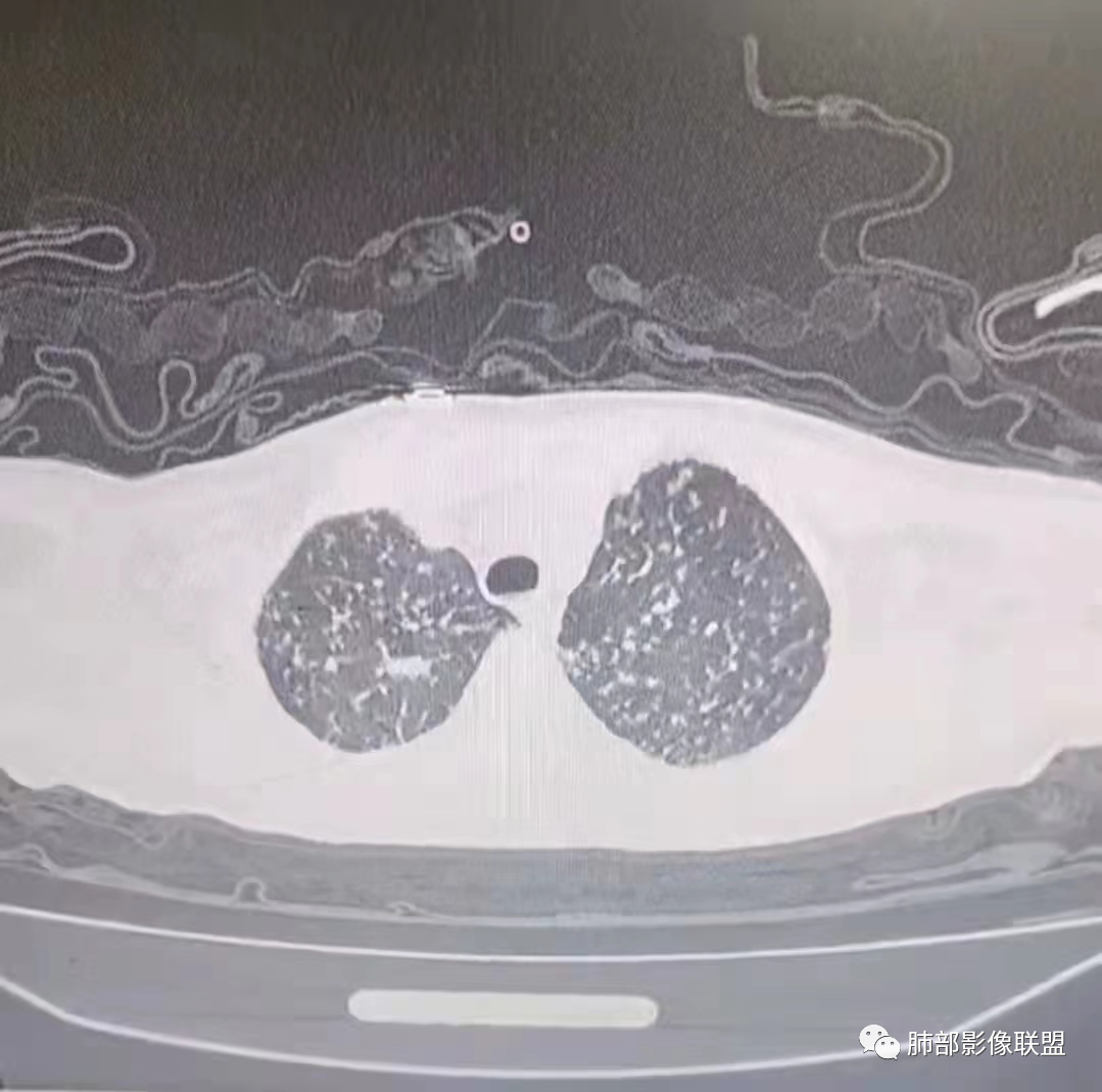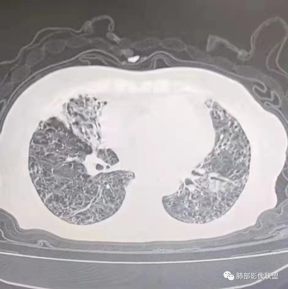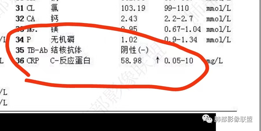 2)病灶密度较均匀柔和,边界不清,没有树芽征,没有新旧不等,病情反复,吸收变化较快,显然不符合结核或非结核分枝杆菌感染。