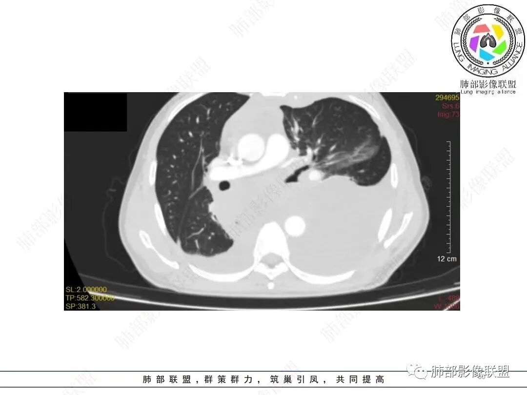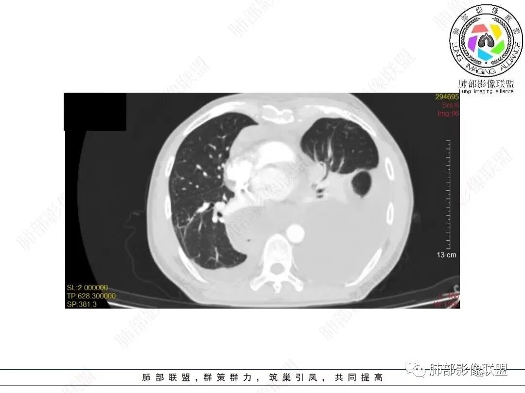 非上皮来源的恶性间叶组织肿瘤应当纳入视线,广泛性侵犯,区域性转移等等,梭形细胞瘤、原始神经外胚叶肿瘤(PNET)、恶性胸膜间皮瘤等等,如果病灶有区域分布优势,如本例的左侧胸膜改变,可以想到胸膜间皮瘤可能性。