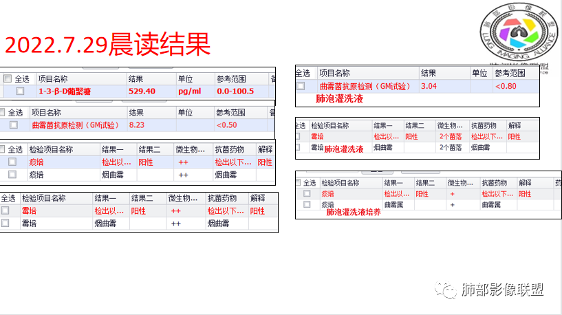 双肺多发斑片影,支气管管壁增厚,三天后复查病灶增多,考虑感染,曲霉?