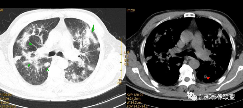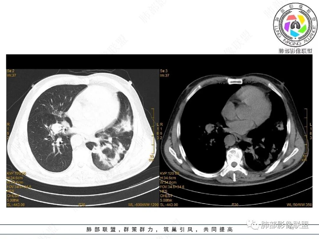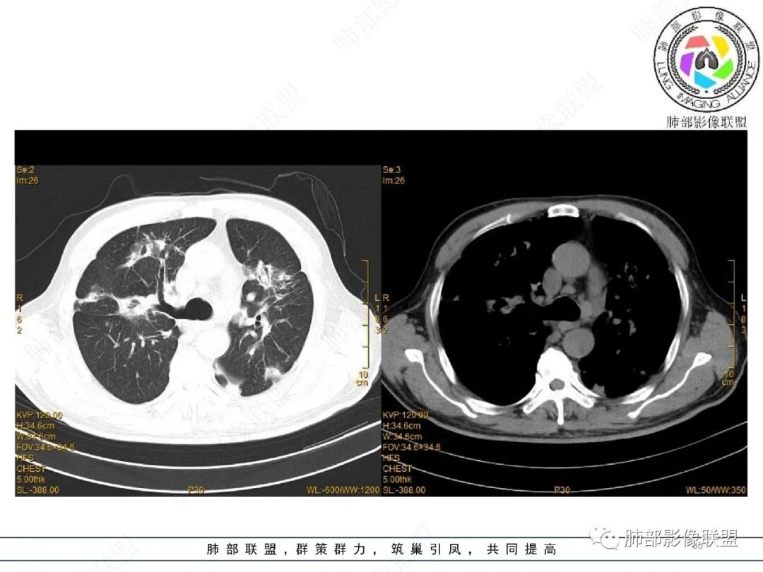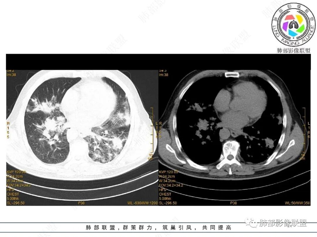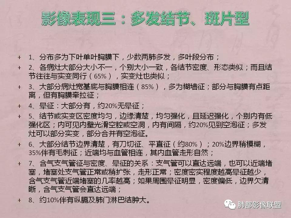 注意:多发结节最后经常融合为大片实变