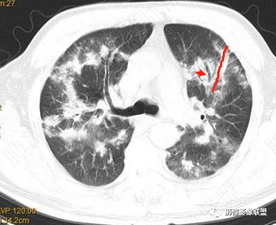 这个影像应该有支气管血管束分布病变吧
