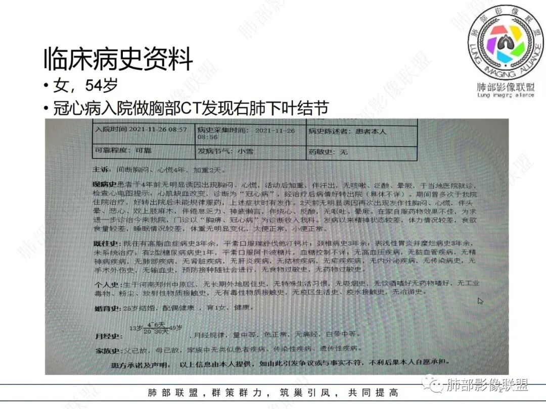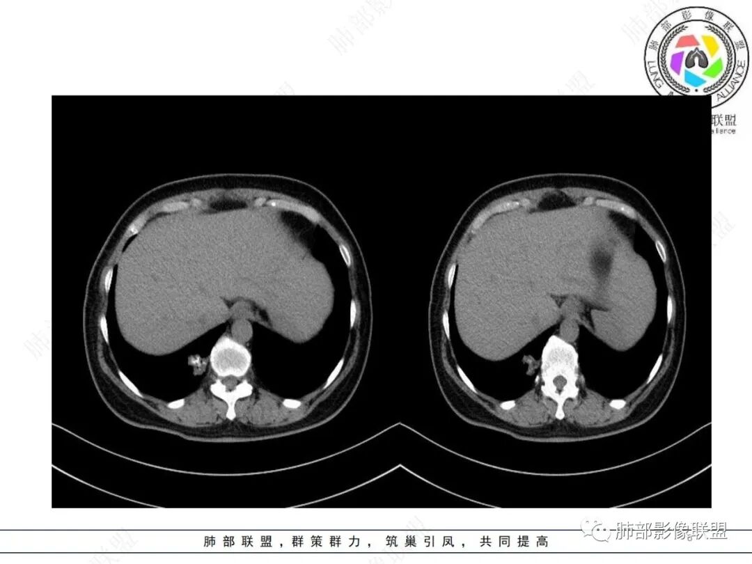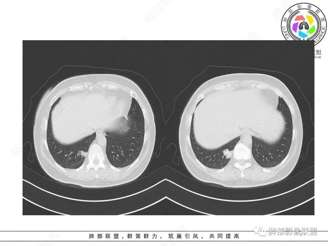 1.本例病灶不够抱团,位于周边,钙化不具有爆米花“弧形”特征,也未见脂肪密度区,错构瘤的特征并不明显。