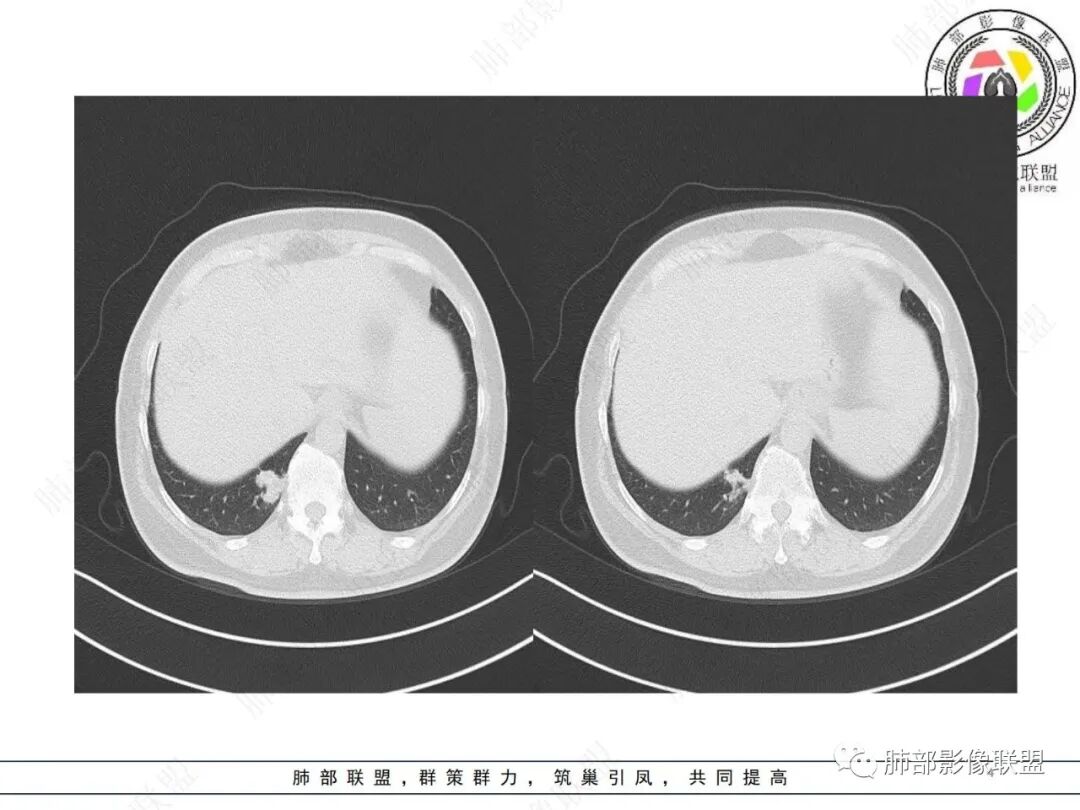 前后影像对比意义重大,既能够观测结节影是否进行性增大,还几乎可以证实钙化的来龙去脉!