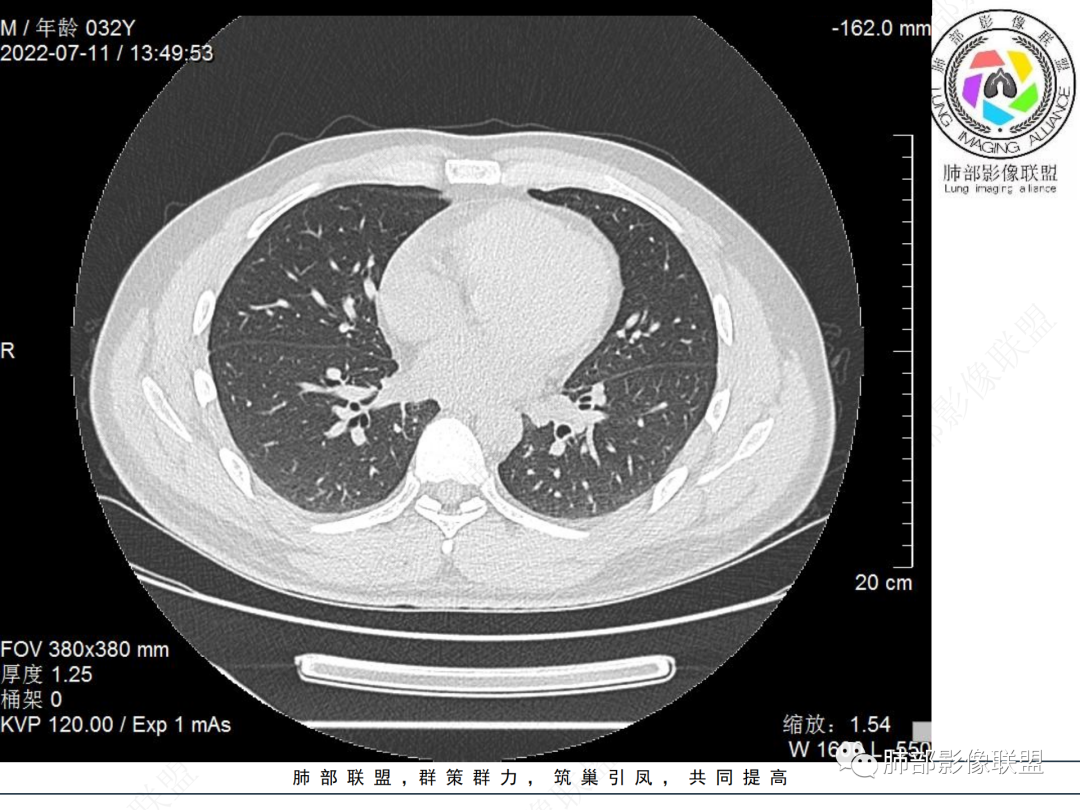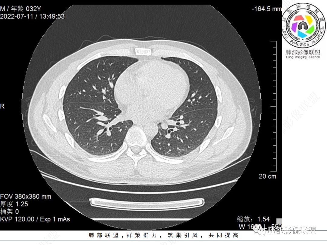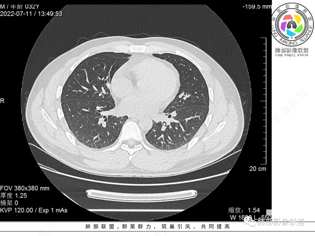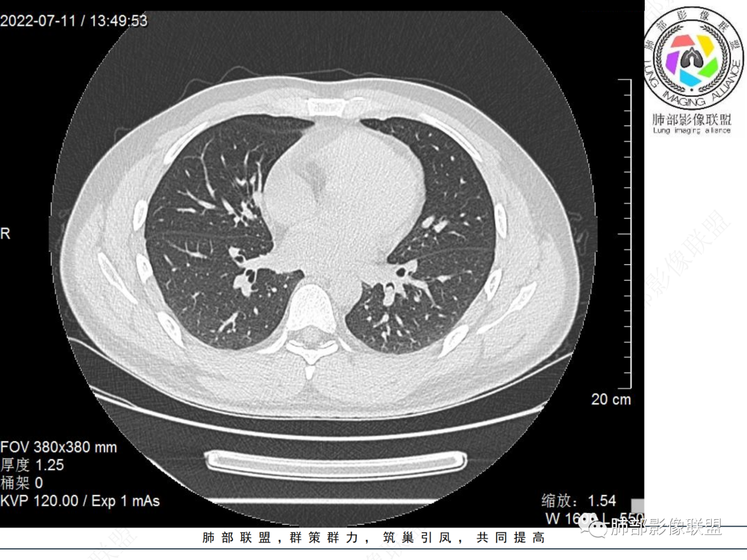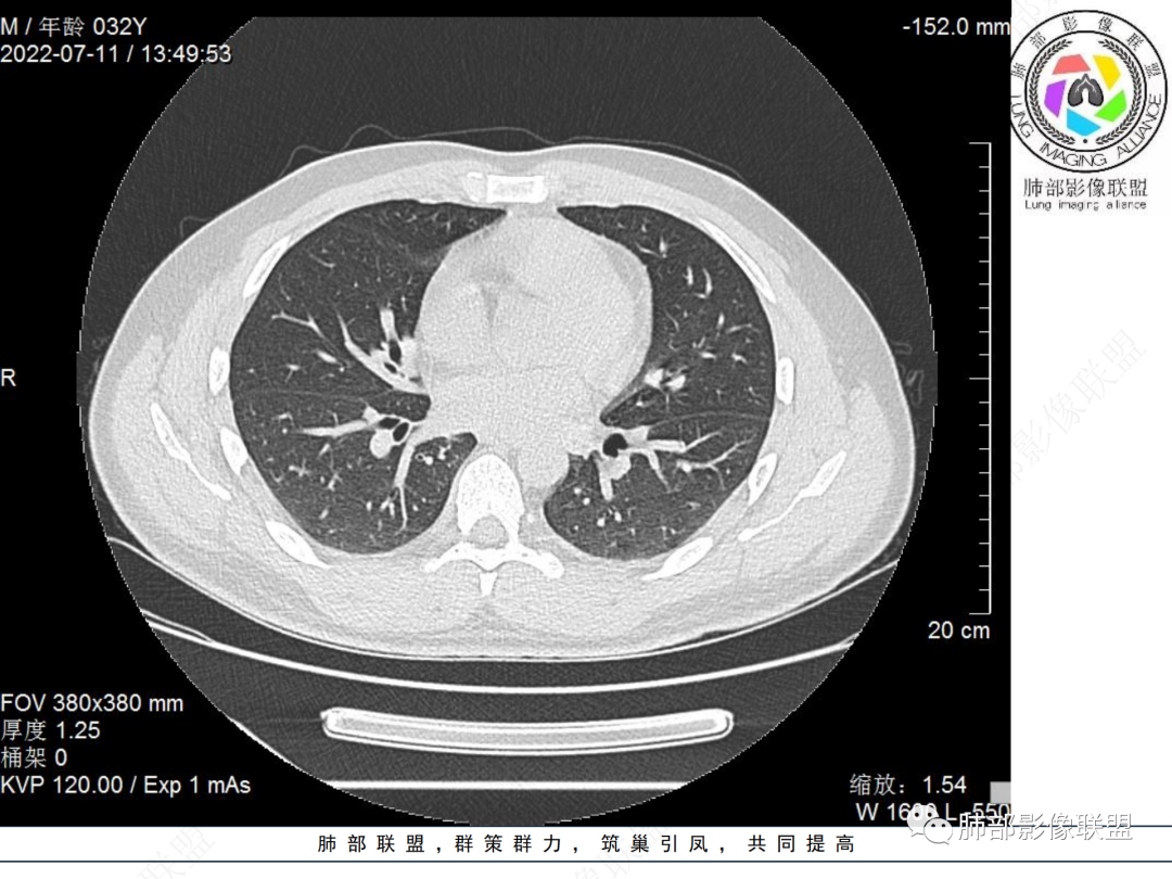 IMT常表现为边缘清晰的周围型结节或肿块,一般体积相对较大。大约10%-20%发生于支气管及气管腔内,表现为中央型病变,一般为单发。IMT胸部CT显示90%为单发结节或肿块。