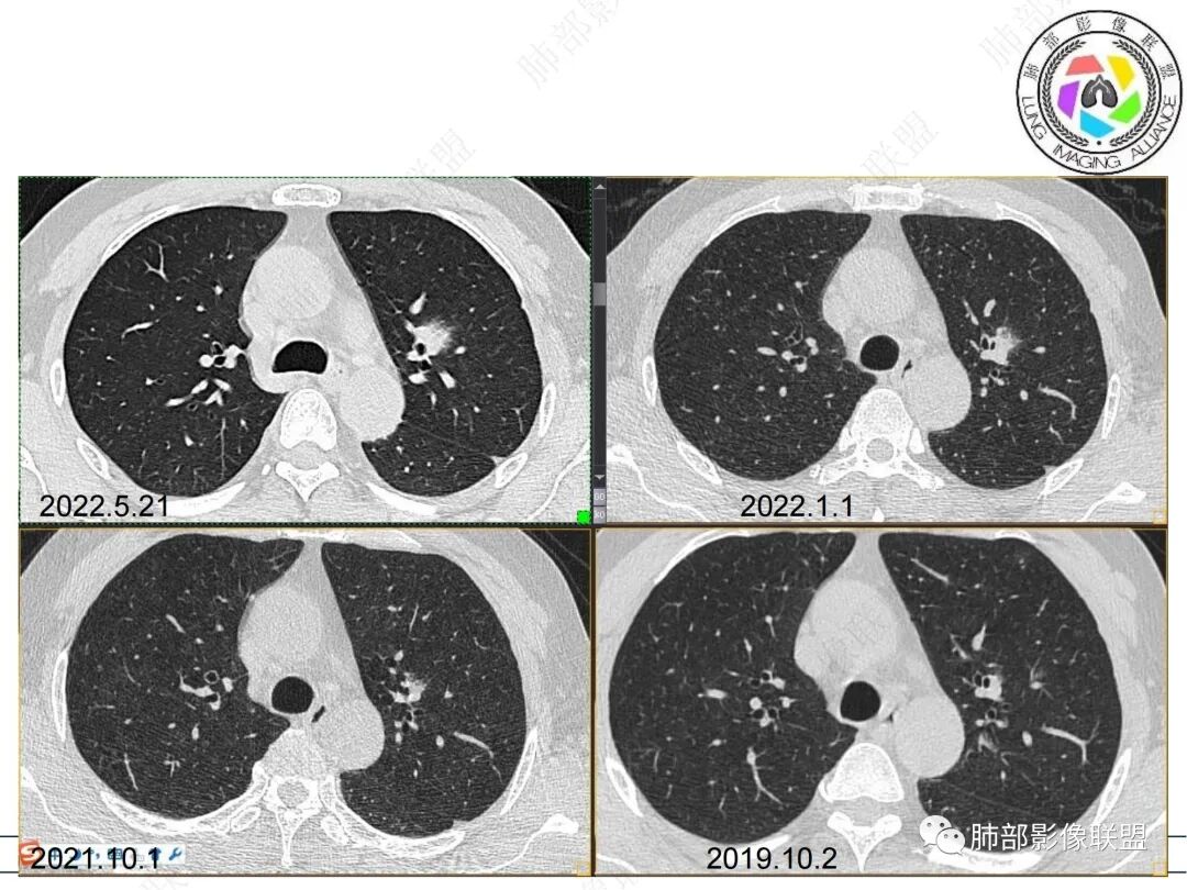 肺部影像联盟晨读病例考虑腺癌,鉴别肉芽肿。