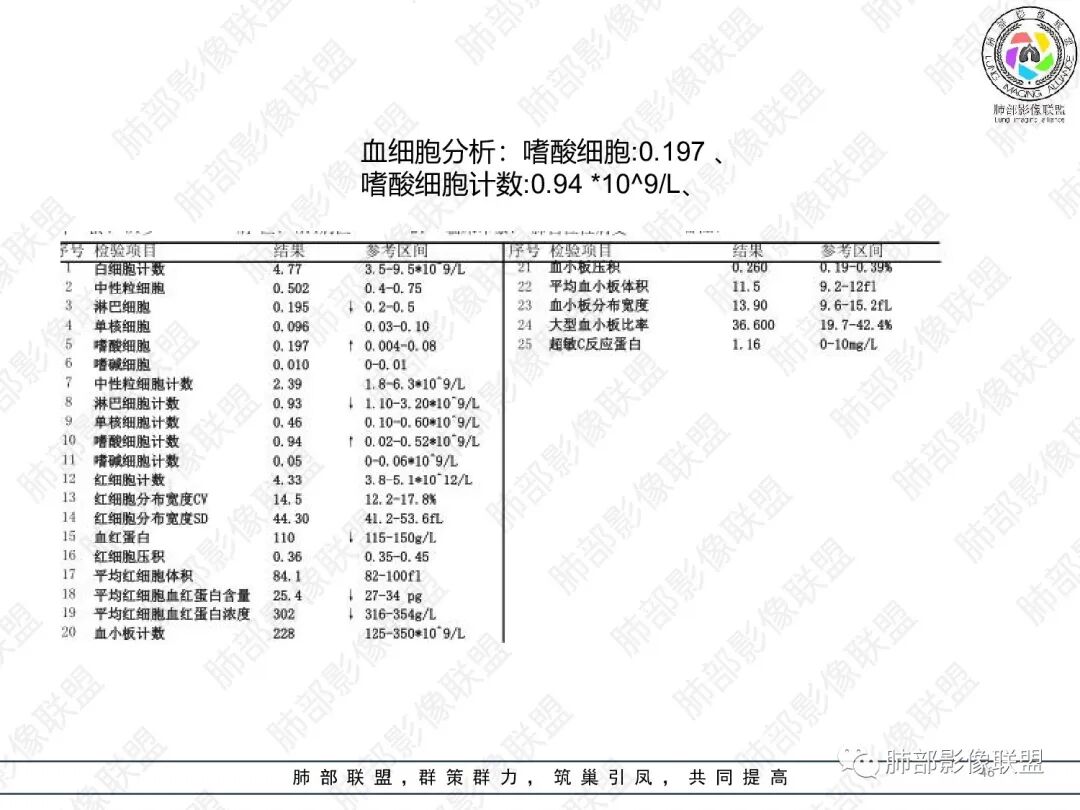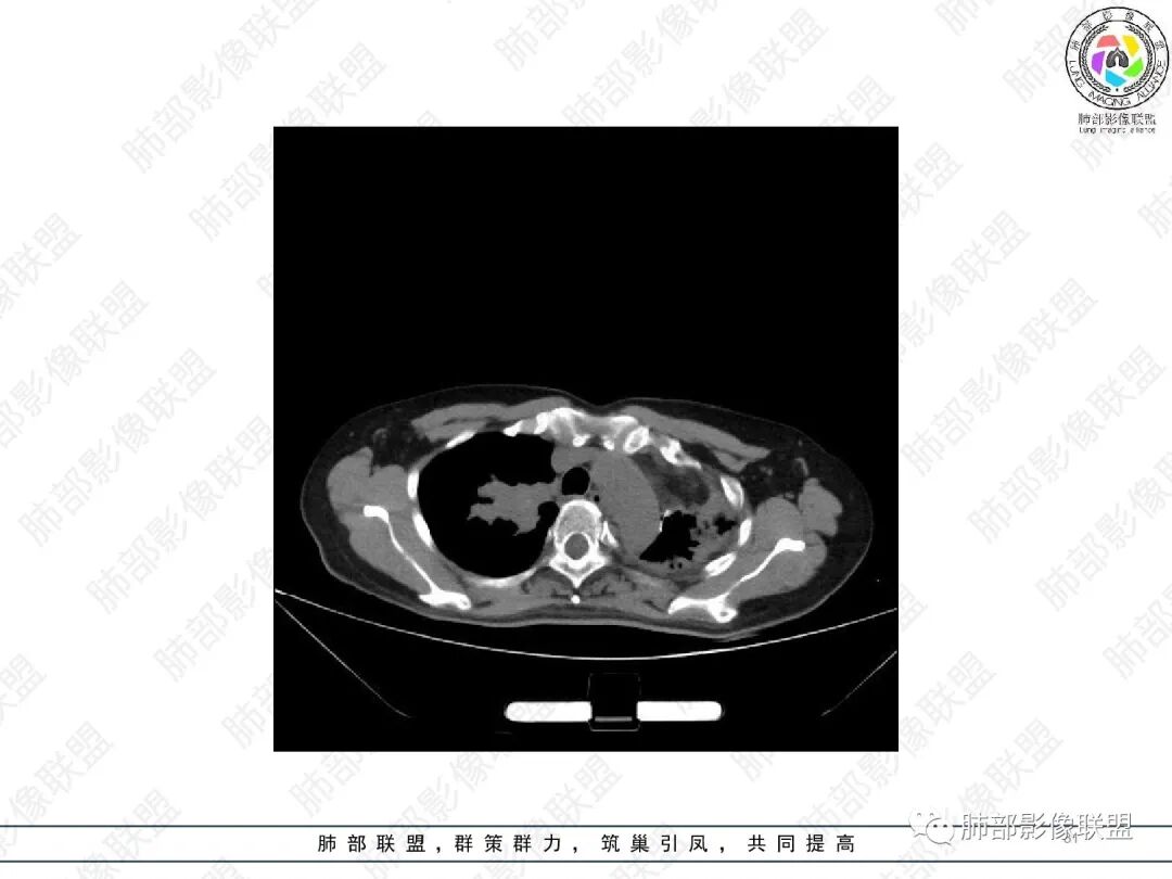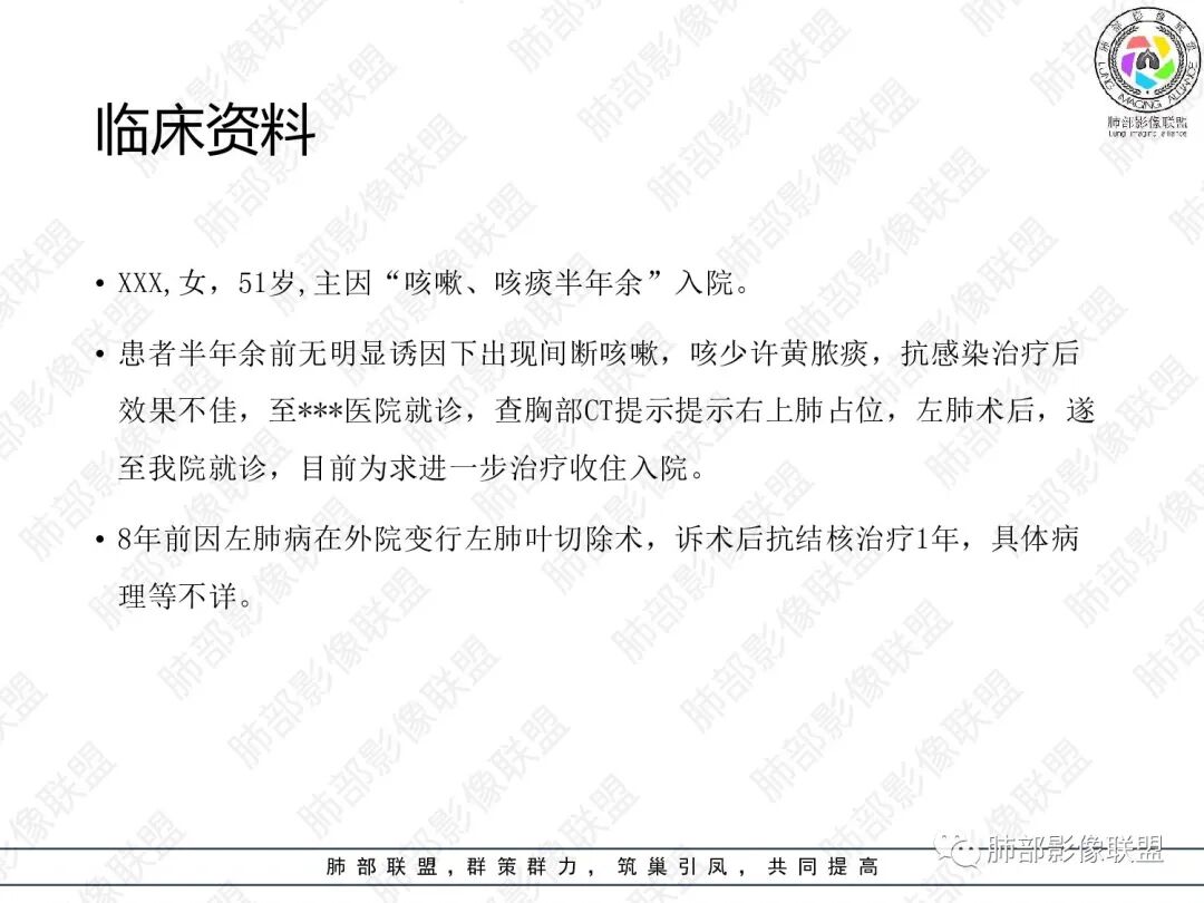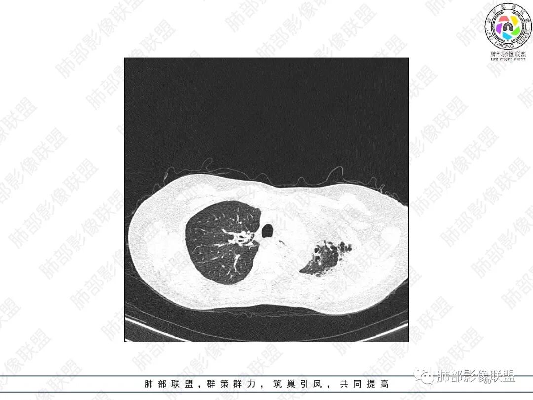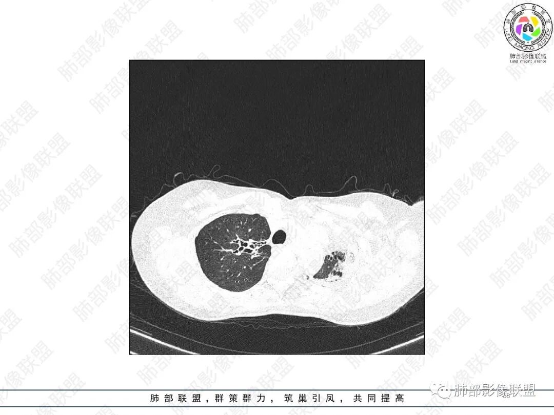 1.中年女性,主因“咳嗽、咳痰半年余”入院,既往史:8年前因左肺病在外院变行左肺叶切除术,诉术后抗结核治疗1年,具体病理等不详。实验室IGE显著增高。