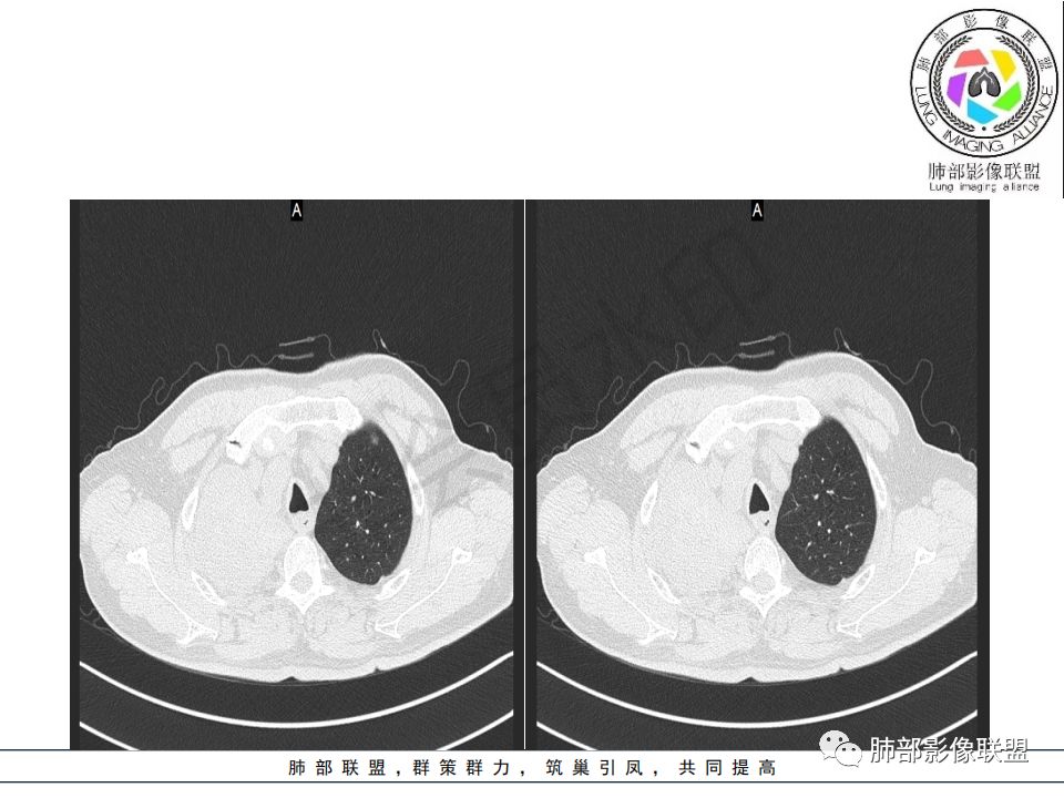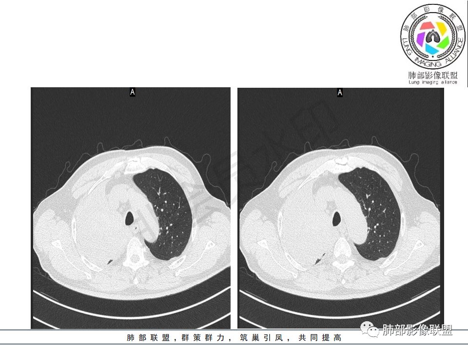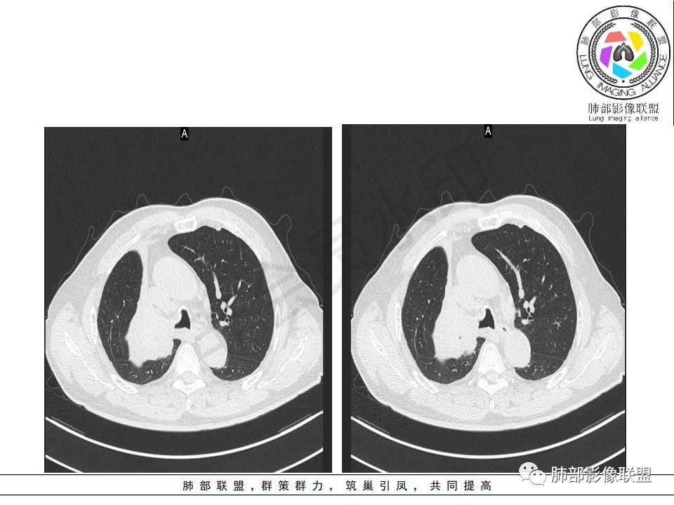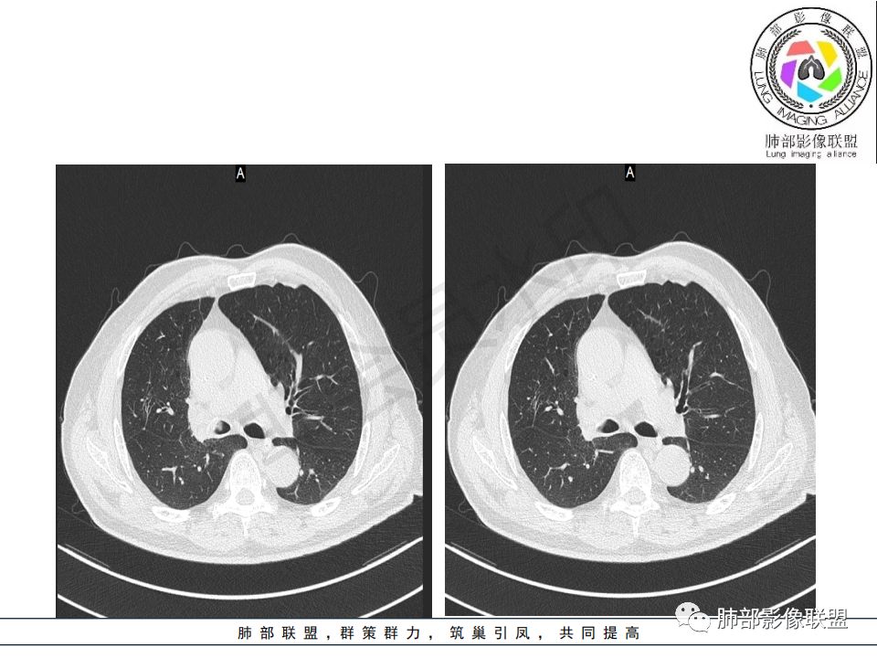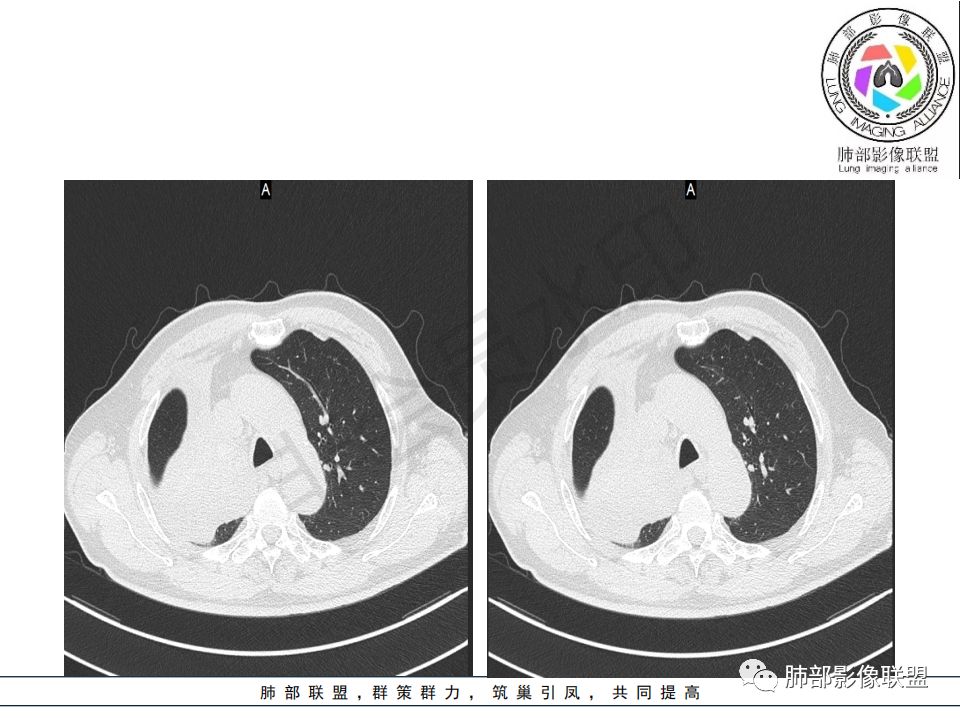 病史:男.77岁,咳嗽1月;干咳,少许白痰,无发热,2013胃癌术后,角蛋白24.65(0-3.07),SCC和proGRP不高;
