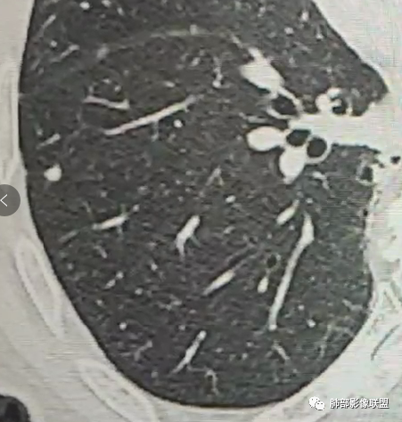 12、少见征象:少见胸水、树芽征、液化坏死、明显钙化、空气新月征、腺泡结节。