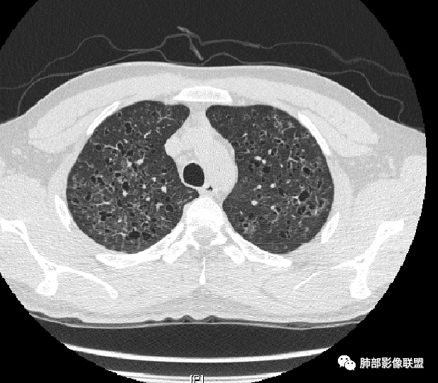 小飞: 晨读,中年女性,病史保密,两肺散在薄壁囊腔,肺底较多,部分较大,双肺少许磨玻璃密度影,考虑LIP