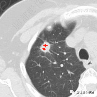 右肺上叶前段结节,有分叶毛刺,胸膜牵拉不明显,毛刺细长比较软,密度不均中央有低密度坏死,呈明显环形延迟强化,考虑炎性肉芽肿,鉴别腺癌