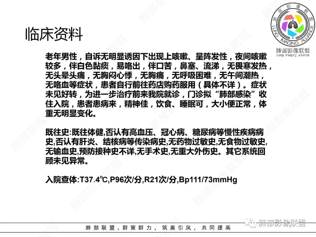 肺部影像联盟是最全面的肺部影像与病理结合的学习平台,这里可以每天学习到大师们的经典分析思路,也是你工作、学习最好助手和基地,联盟将会从每周三轮值病例中精选病例提前供大家实战训练,每周三晚上八点肺部影像群里准时讨论及资深老师分析点评,希望关注的老师们都有所收获,也欢迎您提供病例一起学习分享,感谢大家一直以来的关注与支持,不对之处恳请批评指正!