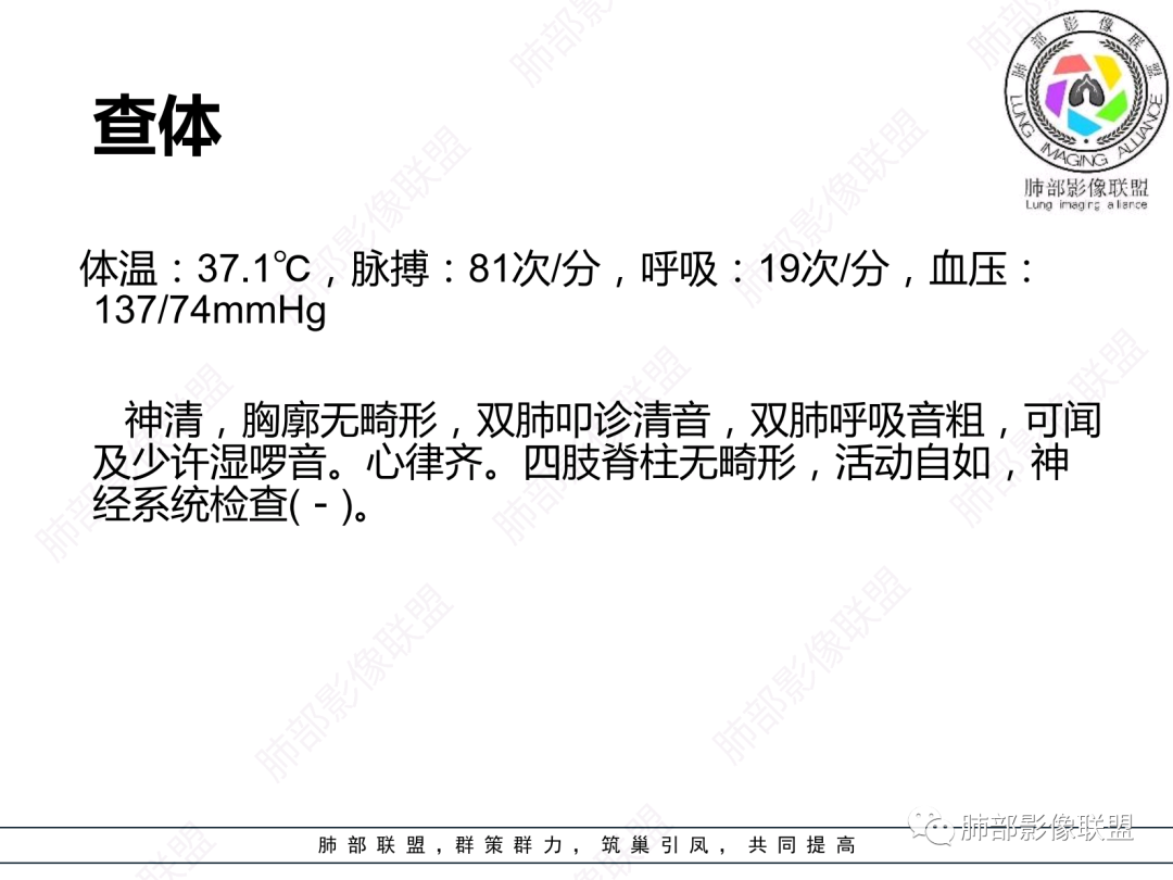 老年女性,慢性病程,症状“逍遥”,无明显发热、咯血及喘憋,双肺多发树芽、结节团片影,纵隔淋巴结肿大,伴支气管扩张、小空洞,综合考虑NTM可能性大