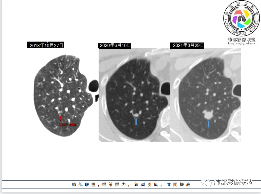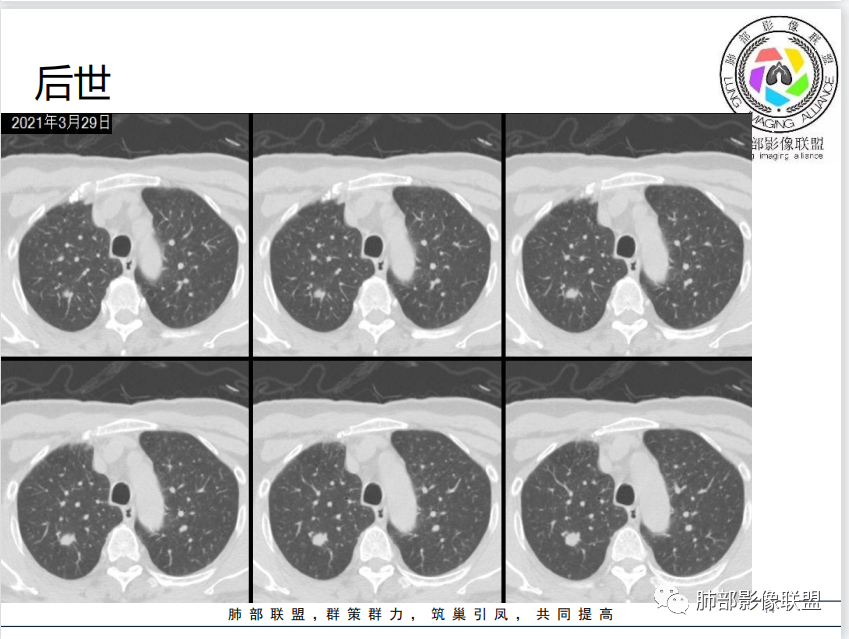 此外,动态观察病灶大小变化有助于鉴别肺结节的良恶性。