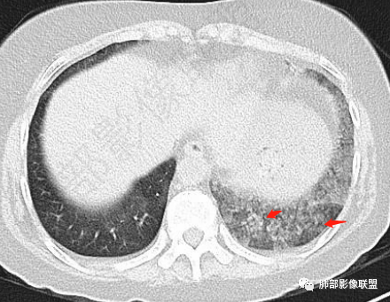 大片GGO:免疫力低下,出血。好像都没提,也没看到气道结节,加上这个体温考虑感染确实不踏实,一个月这么弥漫GGO,无非合并出血,极速进展,似乎与病程不符合,按这种病程与影像表现,感染不支持。