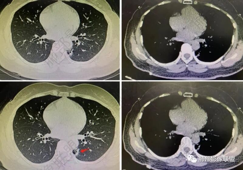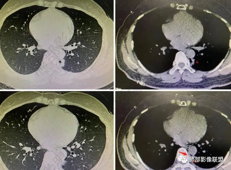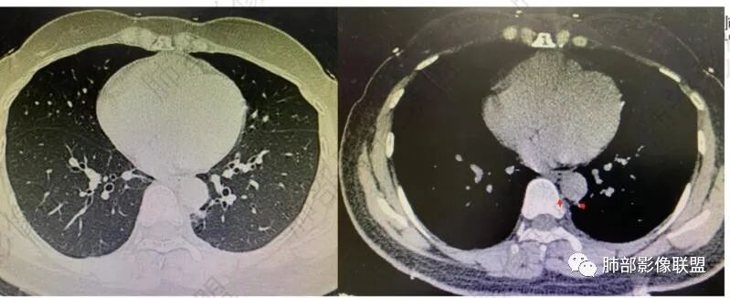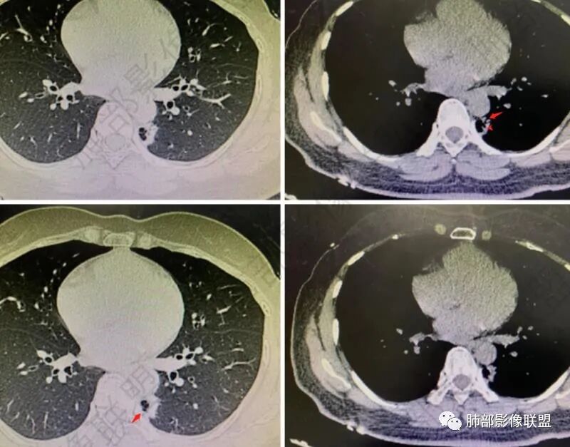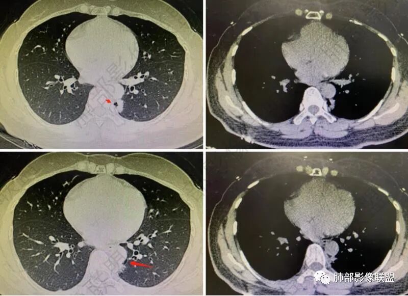 2、临床实践中,左下叶背段类似阴影并不少见,支气管肺组织猬集纵隔旁,常为含气不良,或伴慢性炎症,长期存在。