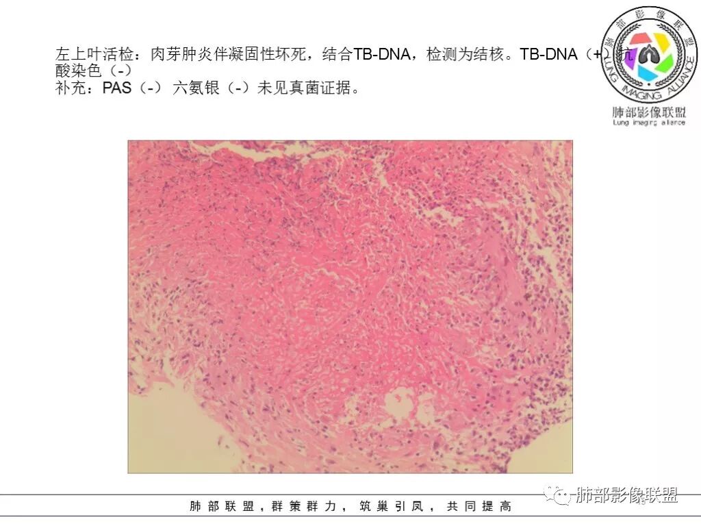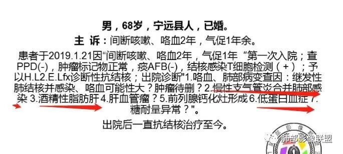 朱老师病例,考虑炎性病变,倾向于气道来源,能考虑到的疾病谱:结核或NTM,努卡,曲霉菌。然后不会鉴别了。