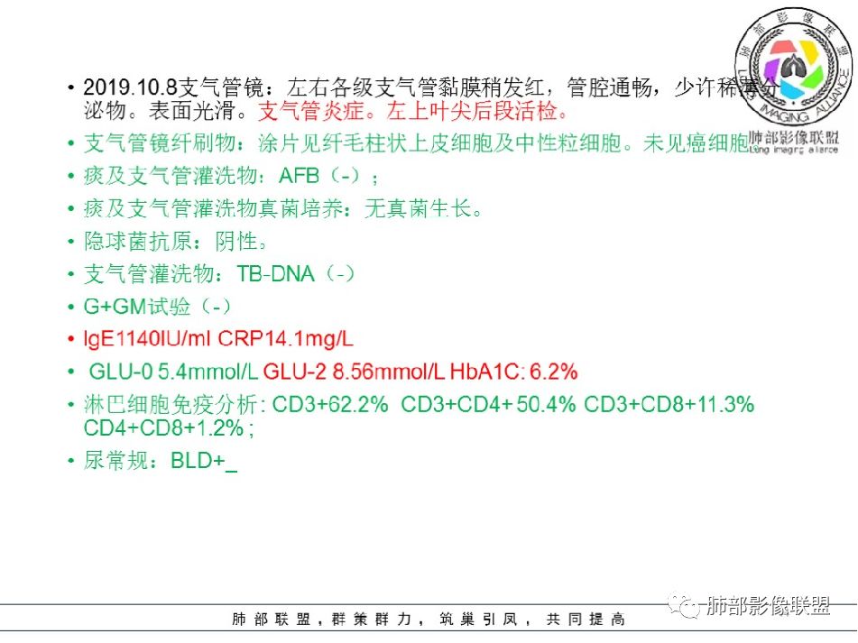 这个要时间慢慢看的,早上太忙,匆匆看一下,IGE明显升高,病灶此起彼伏的,与曲霉菌有关?