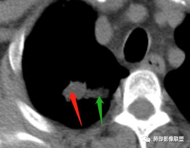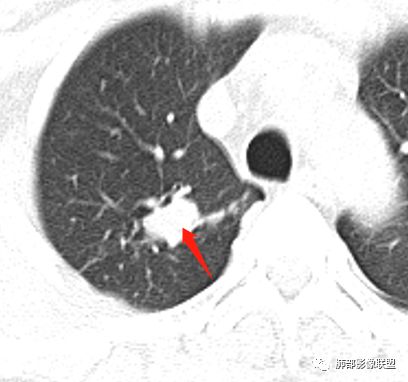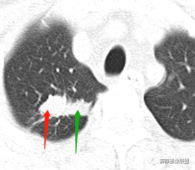 内部小点状影提示可能支气管腔内粘液栓