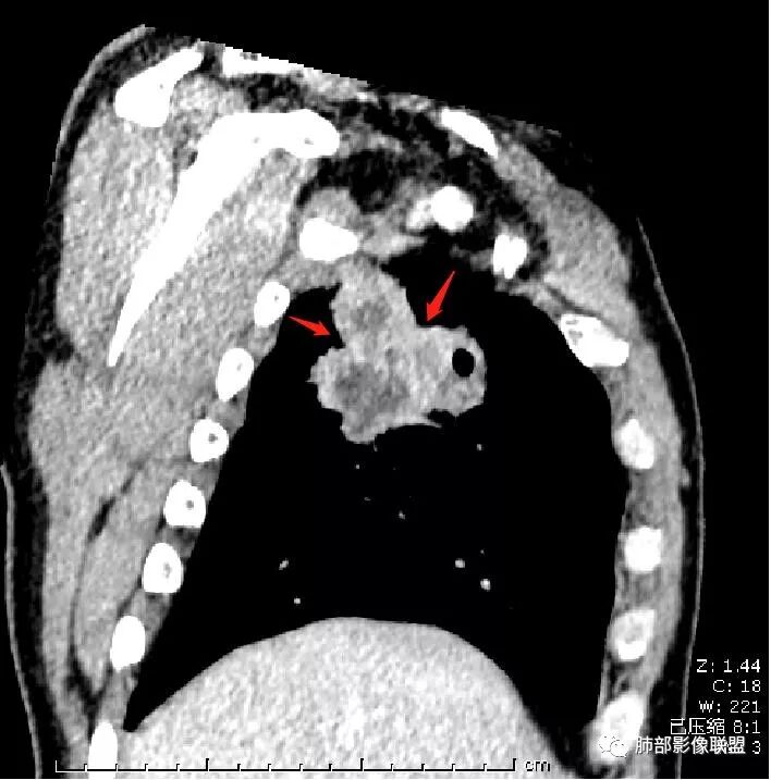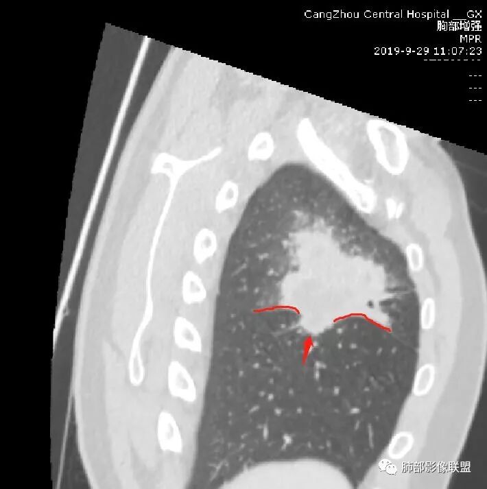 第二种是局部叶裂畸形或发育不全、有缺陷,病灶经缺陷处侵犯蔓延,事实上叶裂缺并非少见,影像观察应当结合冠矢状位。