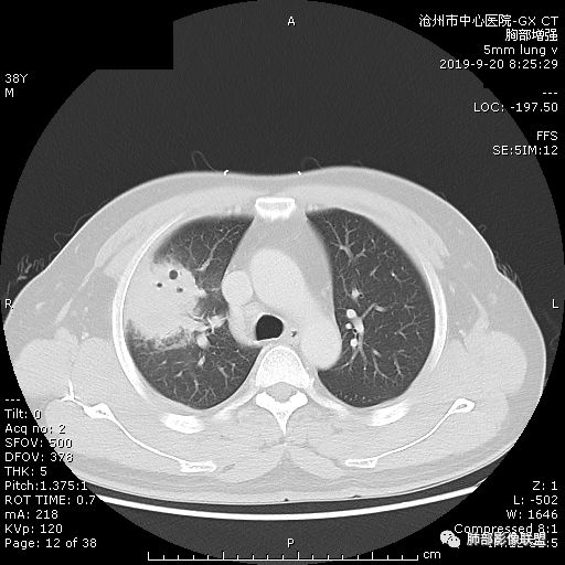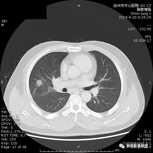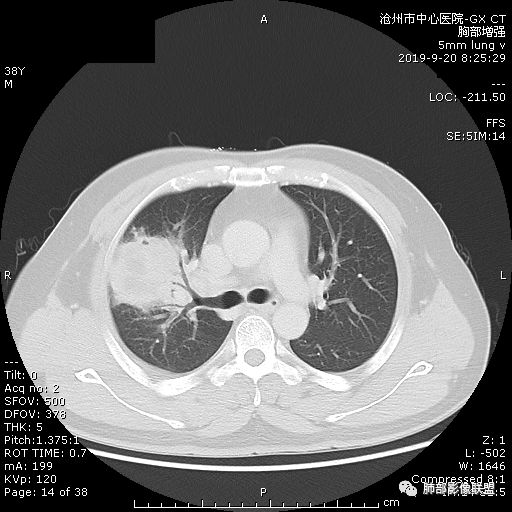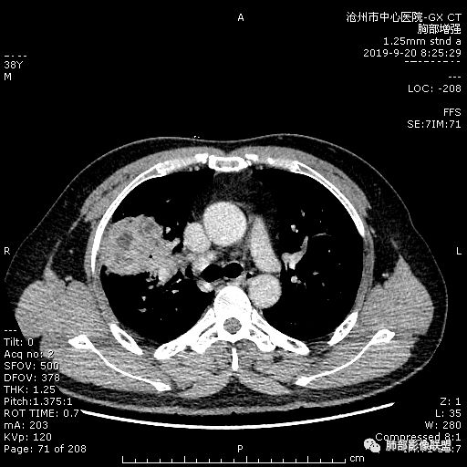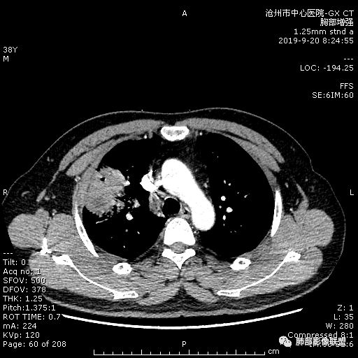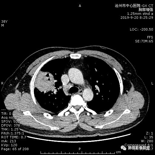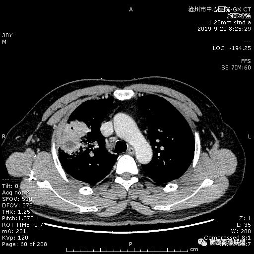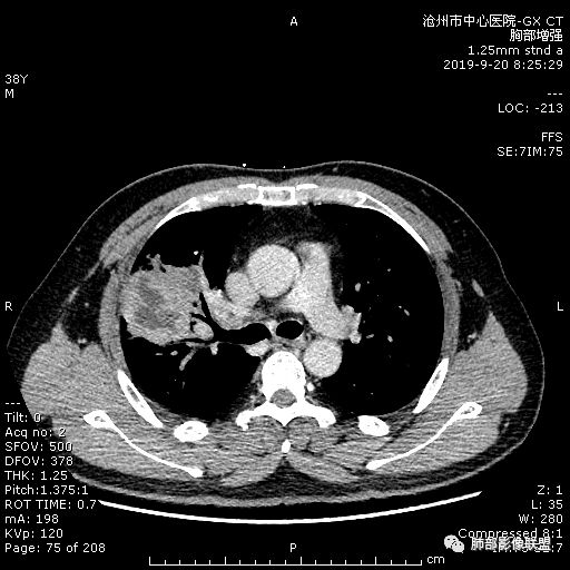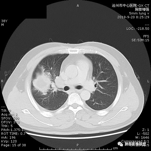 右肺上叶不规则实性肿块,有膨胀有收缩,多坏死,空泡,右肺门淋巴结肿大,考虑肺癌,就是才38岁,太年轻了