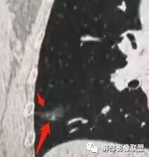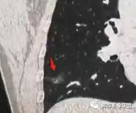 老年男性,咳嗽咳痰3天。MGGN,边缘见月牙铲、胸膜牵拉,血管移动联通?冠状位隐约可见支气管穿行,考虑MIA,重建冠位可见结节比较靠近叶裂,可积极手术处理。