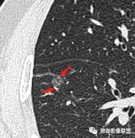 右肺下叶前基底段磨玻璃小结节,其内血管稍增粗,边缘见分叶、月牙铲,考虑ais,炎性结节不排