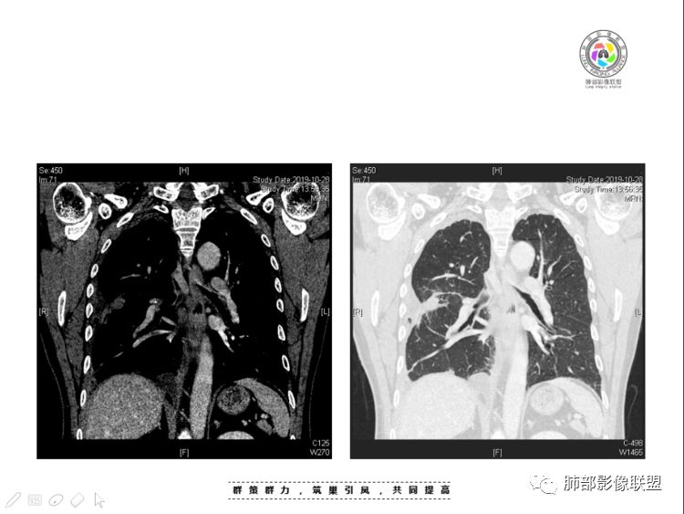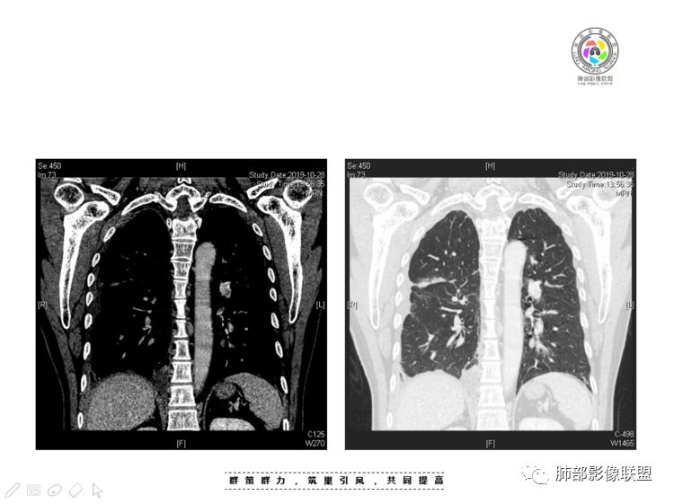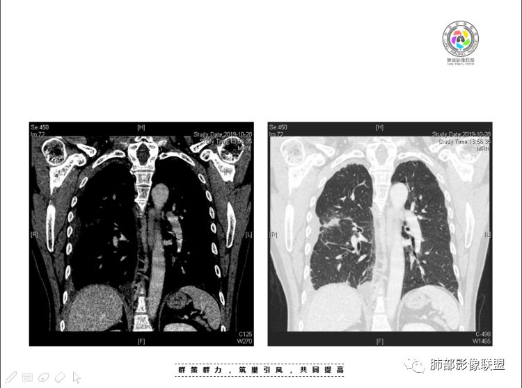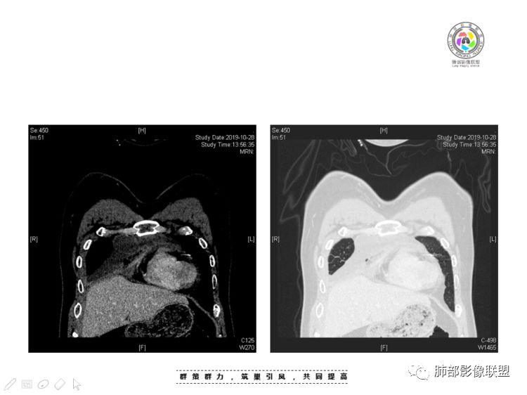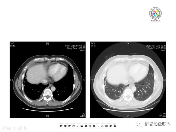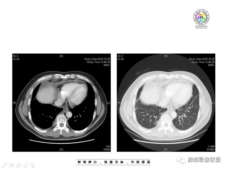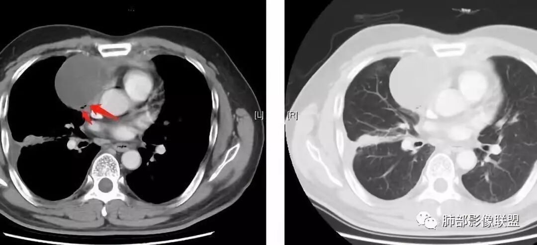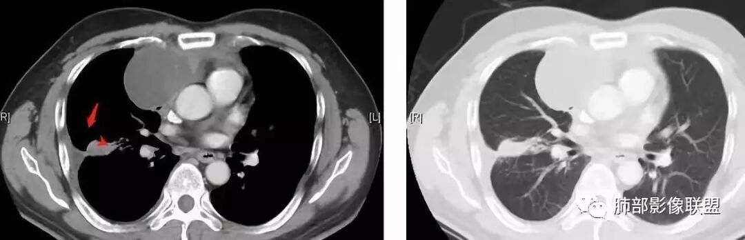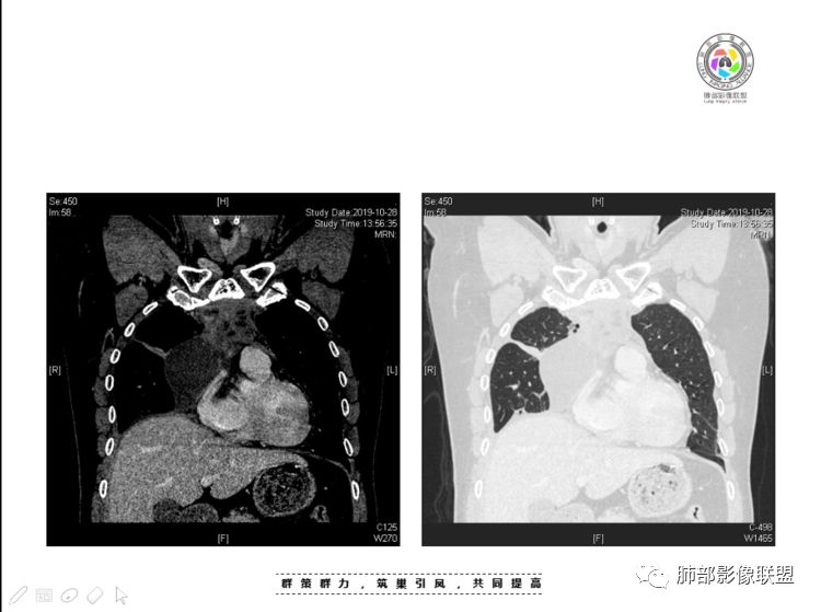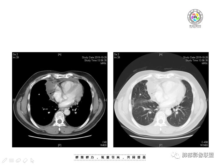 尽管前纵隔病灶缺乏相关病理资料,但是小编还是认为肺内与纵隔病灶以二元论解释。只是肺内恶性病灶引发的胸膜改变可能会影响我们对纵隔病灶的判断。