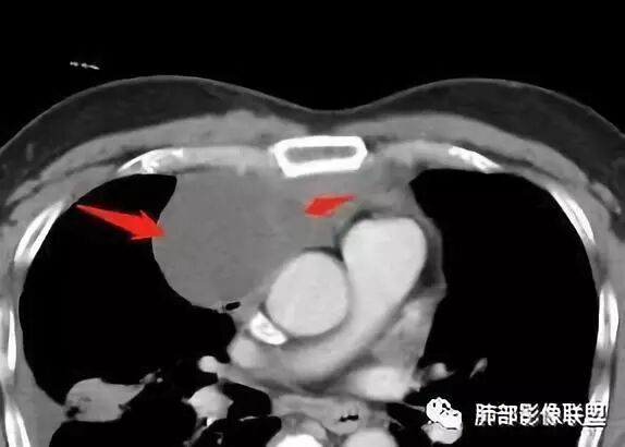 南边:纵隔囊性病变:良性?恶性:胸腺癌?
