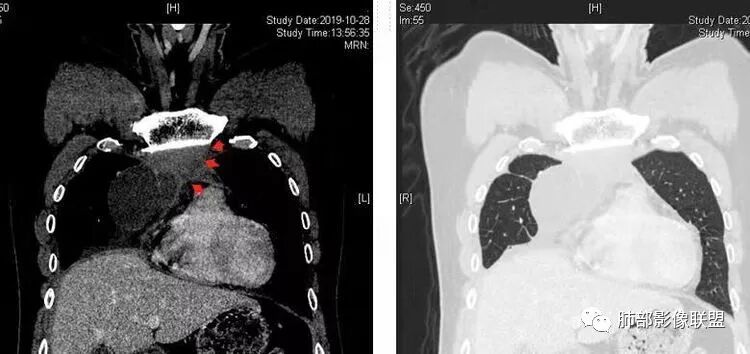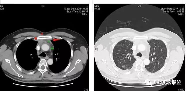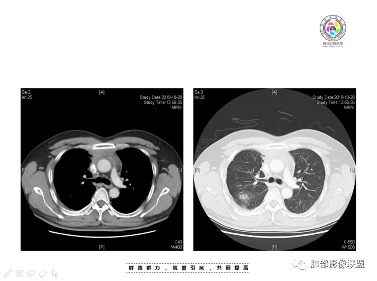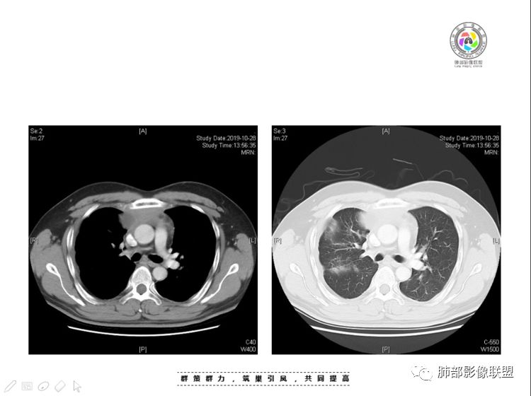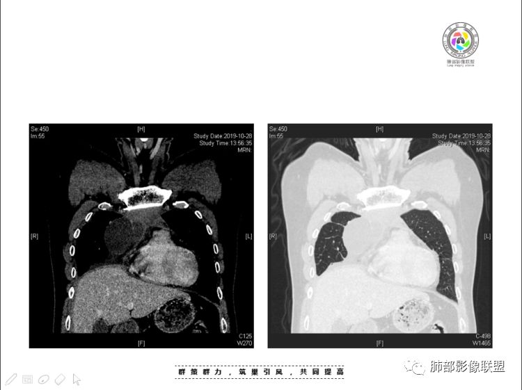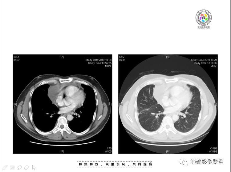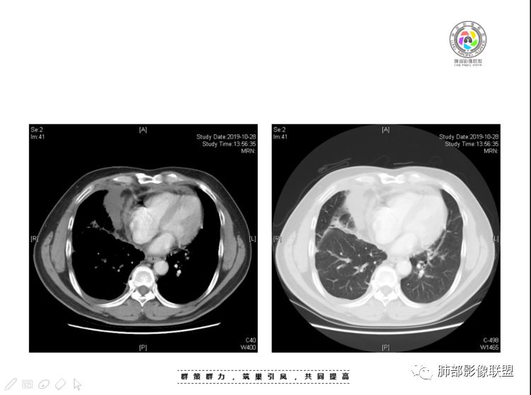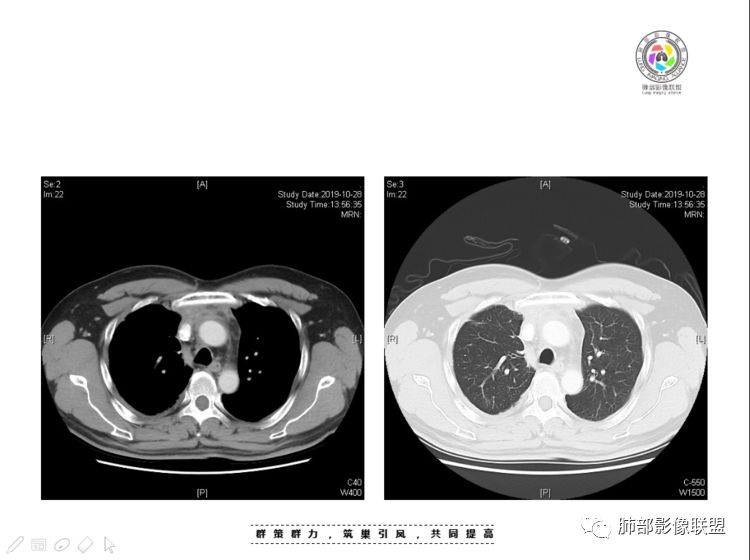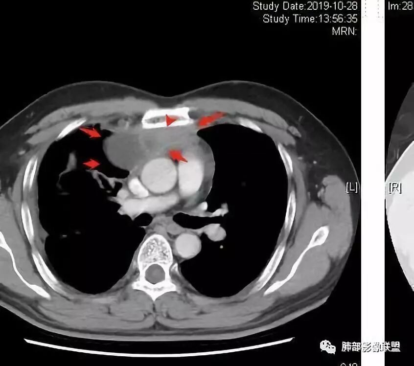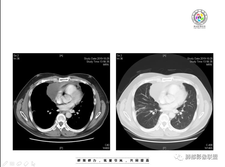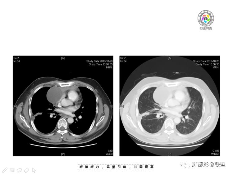 南边:大家看看前纵隔的病灶,符合肿瘤吗脂肪,周围密度增高