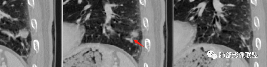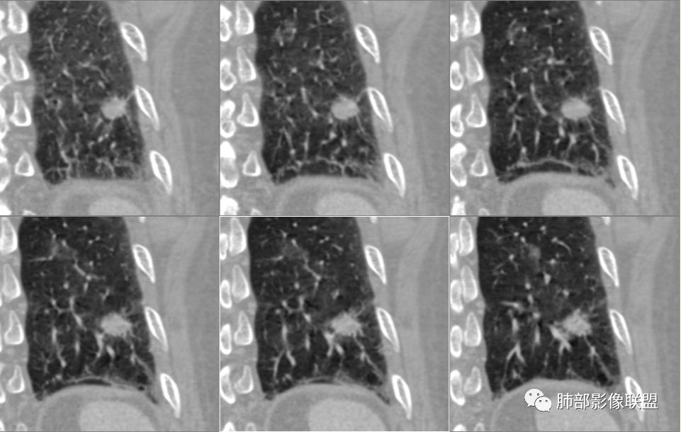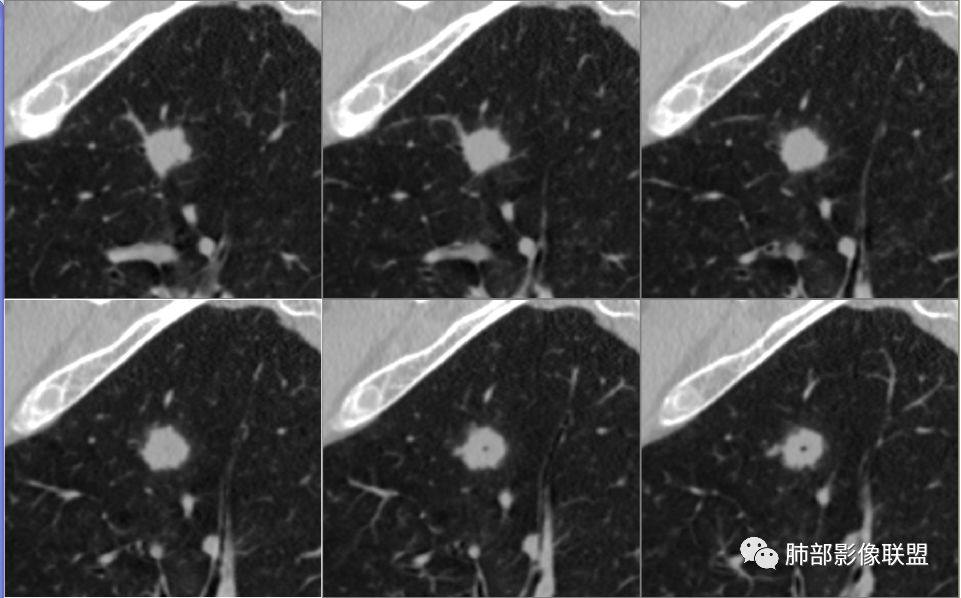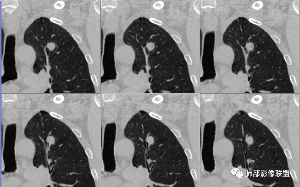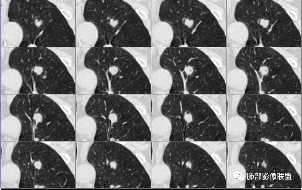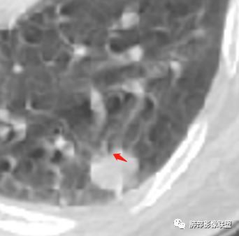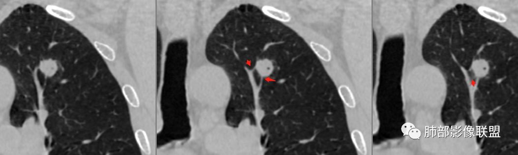 紫气东来:病例二,结节内空泡,支气管截断,血管进入,考虑恶性。
