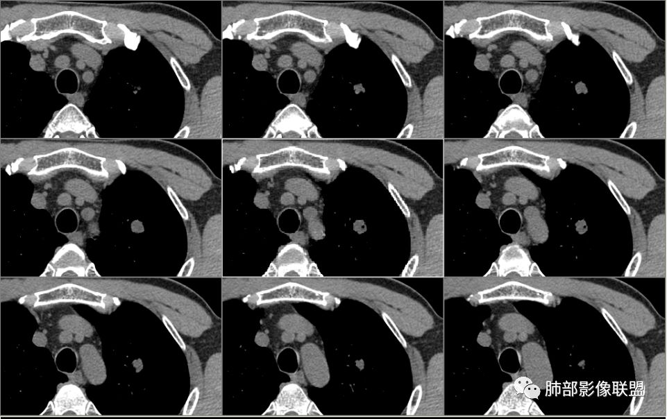 明日の路过:第二例,患者病灶在左肺上叶,分叶、空泡、血管供养征,感觉跟书上的恶性肿瘤图片一模一样。考虑恶性肿瘤可能。建议全身筛查后直接切除。
